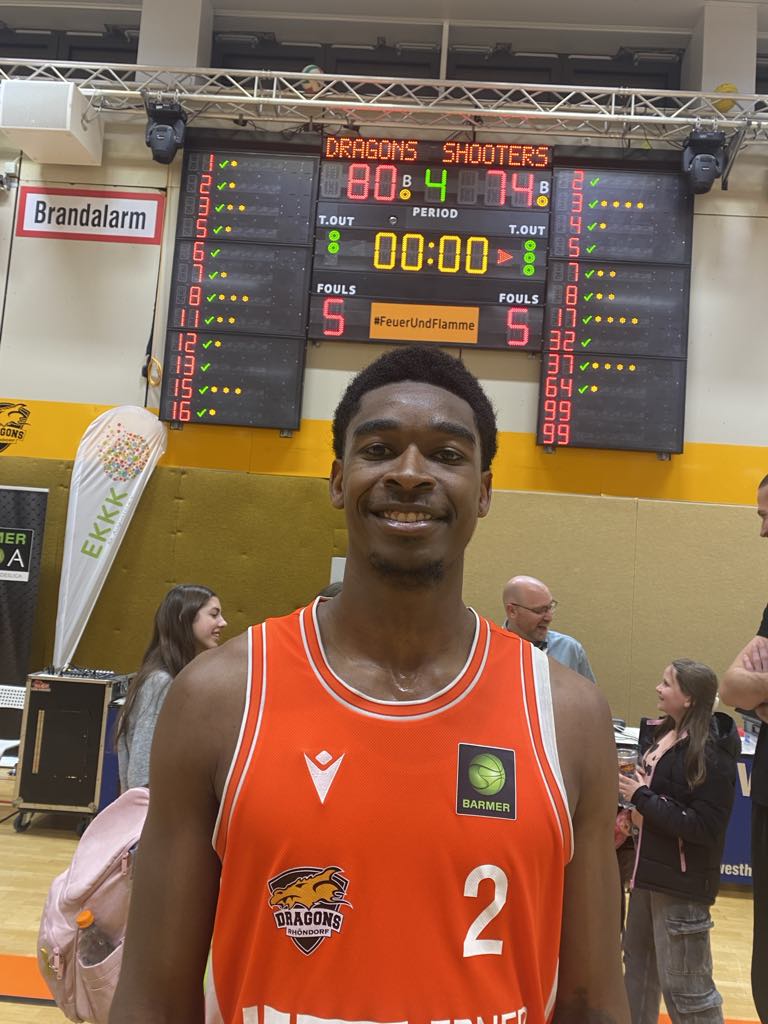 The Dragons Rhondorf did a super job managing the lead in the fourth quarter and despite Neustadt supplying answers, they were able to punch back to hold the lead. In the first few minutes, Neustadt stayed on the Dragons heels getting free throws from Loch and a lay in from ex San Diego Christian(NAIA) forward Robin Kniss to trail 66-65. But then came the last hard punch from the Dragons Rhondorf as they cruised out on a lethal 8-0 run to lead 74-65 something from which the guests had no answer for. Back to back three´s from Reinhart and Harris-Dyson and a lay in by Dujmovic did the trick. That punch was too much for Neustadt. Neustadt did battle getting a lay in from ex Aschersleben forward Christenvie Kwilu and free throws from Elias Marei to trail 74-69 with 2,20 to play. However the Dragons Rhondorf came up big in crunch-time as Mejias was clutch hitting a 20 footer and free throws for the 78-71 lead. Mpacko did add a circus three to trail 78-74, but Reinhart sealed the win with free throws. “We played really well as a team and trusted the system in crunch-time. We also trusted each other. This was a right step going into Xmas break”, stated Juhwan Harris-Dyson. “We didn´t get enough execution or rebounds. We also didn´t have good shot selection. We didn´t penetrate enough”, said Amir Licina. The Dragons Rhondorf were led by Jorge Mejias with 18 points. Juhwan Harris Dyson added 14 points and Vuk Scepanovic had 13 points while TSV Neustadt Temps Shooters were led yb Emil Loch with 16 points while Aime Olma had 14 points. The Dragons Rhondorf shot 46% form the field and 30% from outside and had 43 rebounds and 17 turnovers while TSV Neustadt Temps Shooters shot 41% from the field and 27% from outside and had 37 rebounds and 16 turnovers.