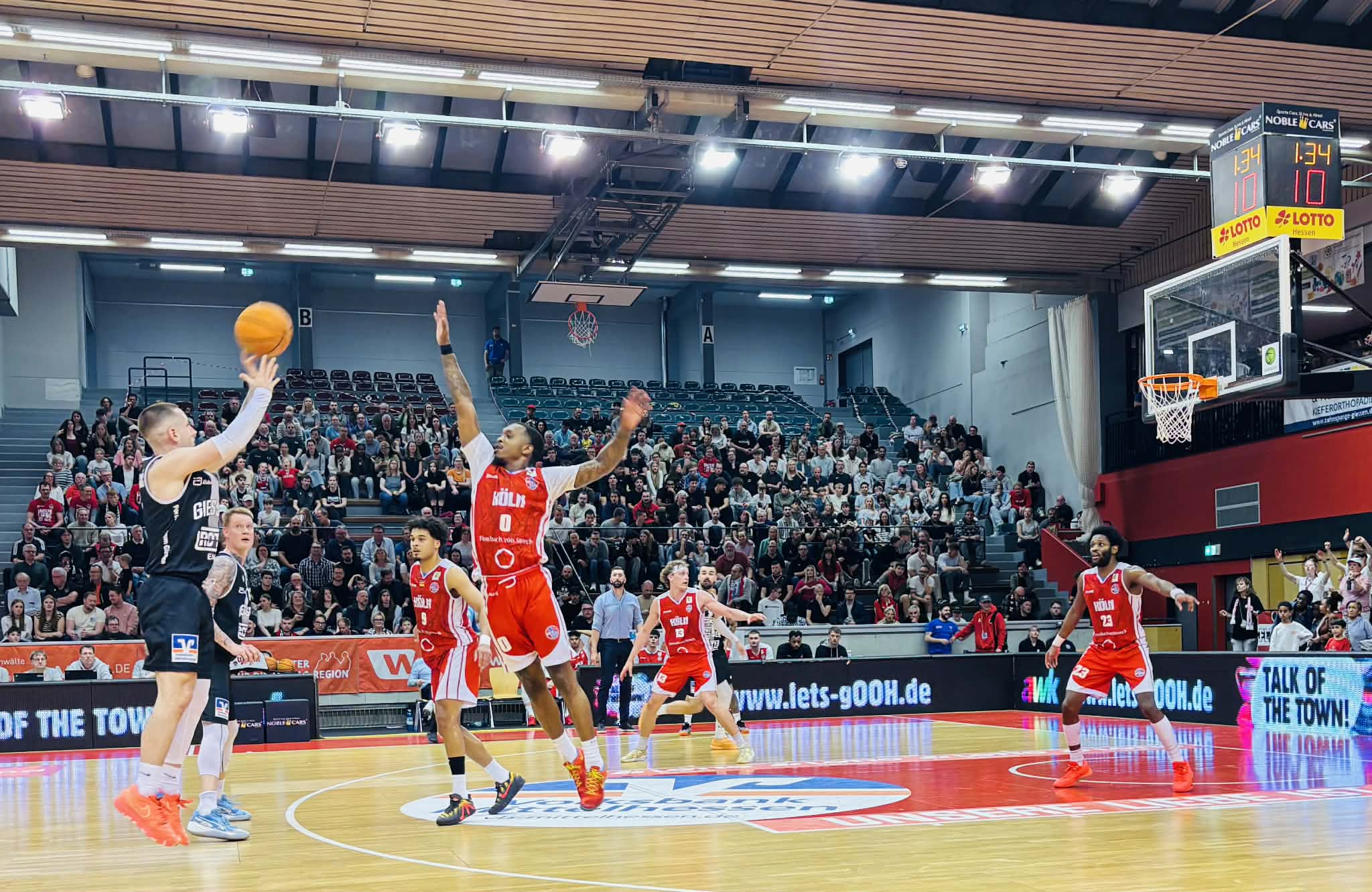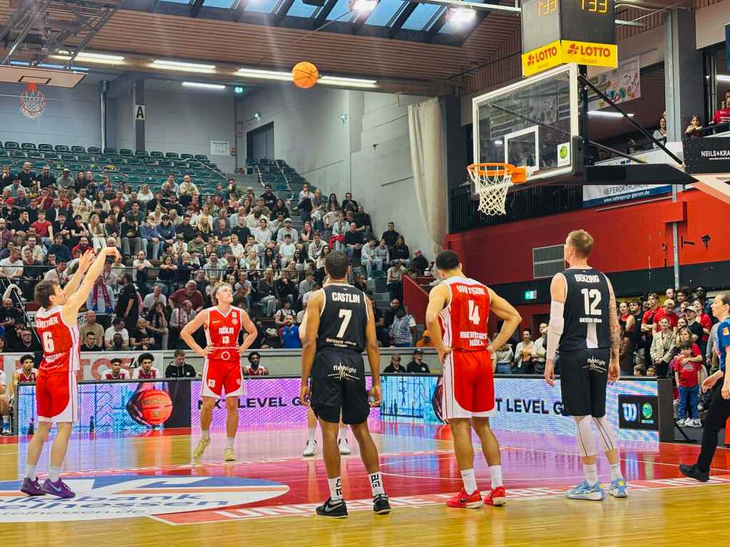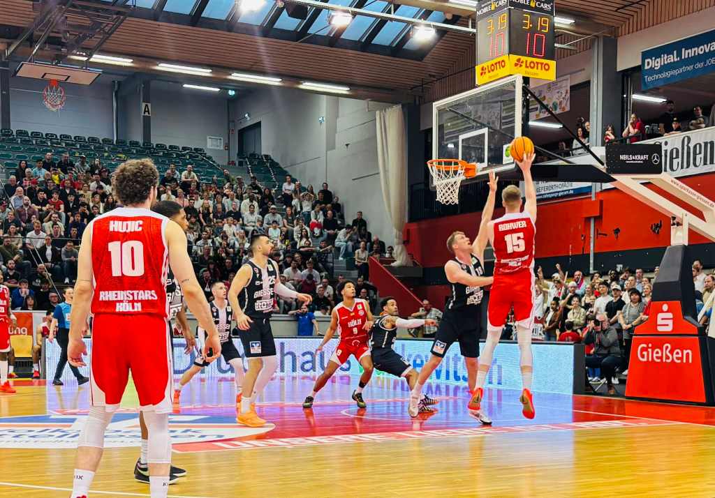 In the fourth quarter the RheinStars did an excellent job managing the lead and never allowed the Giessen 46ers to get closer than 5 points. The RheinStars benefited from Hujic free throws and a Benzing technical foul to keep the lead at 69-61. Giessen punched back with a Gloger lay in and Warnholtz basket, but couldn´t make any ground as German Bjoern Rohwer continued to punish Giessen with his post up play scoring twice to keep the RheinStars ahead 73-65. Giessen remained aggressive getting to the rim getting easy buckets from Krajcovic and Benzing, but they couldn´t match the RheinStars intensity on the rebound and get stops as a Paige lay in and Watson put back kept the guests ahead at 79-70. New Giessen guard Arslanagic kept their slim hopes alive with a nice lay in to trail 79-72, but the RheinStars then slammed the door on Giessen with a clutch Adam Paige trey and Begue tip in to lead 84-72. It also didn´t help Giessen´s come back attempt with 2 Benzing misses at the free throw line. The Ost gym was quiet now with 1 minute to go. Paige and Arslanagic then traded three´s to end the game. “Even if Giessen punched back, we held back until the end. We attacked their weaknesses and hit big shots”, added Adam Paige. ““They did a good job hitting shots from multiple guys. We didn´t do a good job on defense allowing open shots. We also got into foul trouble and they punished us getting to the free throw line”, expressed Aiden Warnholtz. The RheinStars were led by Michael Miller with 17 points while Adam Paige added 15 points and Cedrick Russell added 13 points while the Giessen 46ers were led yb Adnan Arslanagic with 18 points and Till Gloger added 13 points. The RheinStars shot 48% from the field and 45% from outside and had 37 rebounds and 12 turnovers while the Giessen 46ers shot 48% from the field and 27% from outside and had 29 rebounds and 12 turnovers.