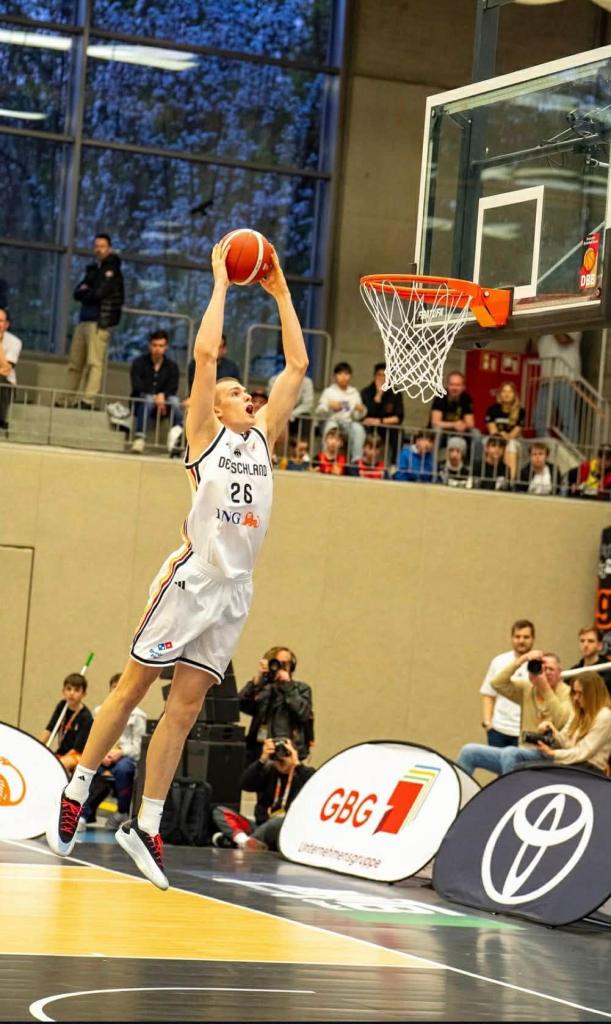 How cool must it be for a kid living in the States to come overseas and play internationally at the youth level? In Germany in the last years there have been guys who have had that opportunity like Sam Griesel who grew up in Nebraska, but has German roots won a Bronze at the 2020 U-20 European championships. But there have been other examples in the last years like the Anderson brothers with Christian and Lucai. Their dad Christian is German and played professionally for Bamberg and married an American woman. Christian has had an amazing track record for Germany since making his debut in 2022 at the U-16 Euro winning a Gold. He then won a Bronze at the U-18 Euro in 2023, then a Gold at the U-18 Euro in 2024 and a Bronze the same year at the Albert Schweitzer tournament and last year came up short losing to USA at the U-19 world Cup winning the silver. His younger brother Lucai helped Germany win the Gold at this years Albert Schweitzer tournament as did William Dopfer. Dopfer is a red head kid from Georgia who got to spend his Easter break in Germany and along the way pick up a Gold at AST and play against some of the worlds best U-18 junior players. But how exactly do his roots to Germany look like? “My whole family is from Germany including my parents. I have been in Germany a lot before. I was the first American born in my entire family including my ancestors. So when I was born, I was registered in Berlin and have dual citizenship. He must have had special stories to tell his classmates the week after? “Yes I did. It was great spending Easter in Germany. I didn´t go to church, but it was still awesome playing at AST. Playing against such elite competition and playing a very different style of basketball was very eye opening for me”, stressed Will Dopfer. It didn´t take him long to feel like home in Germany. “I liked how everyone spoke English. But actually how nice everyone was. Once I got to know everyone and started speaking to them, they opened up and were all really nice”, remembered Will Dopfer.