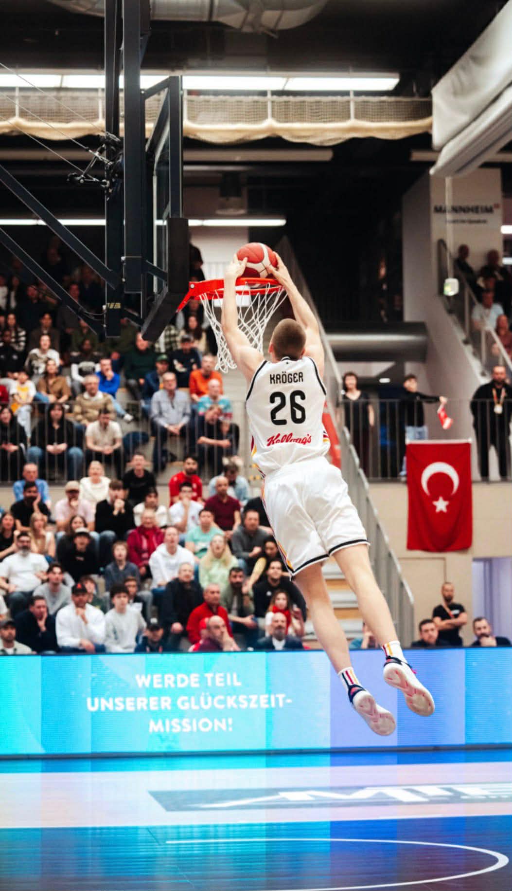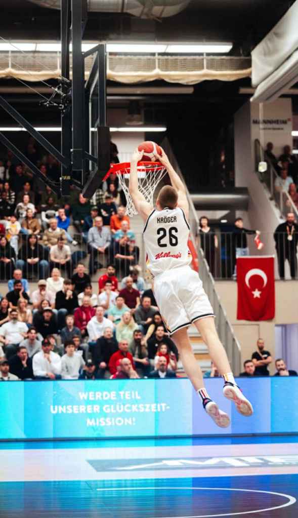 Germany played Bahrain first at AST and used it as a warm up destroying the Asian team 116-59. Germany totally controlled the boards 55-31 and had 6 players score in double figures led by Lucai Anderson with 16 points. “Of course it was vital having an easier opponent in the first game. We had never played together as a team and only practiced a few times together. This game gave us the chance to make mistakes and get adjusted to each other better”, stressed Leonard Kroger. Jamie Edoka had a solid first game scoring 11 points and filled the stat sheet and was on his way to becoming one of the best players in the tournament. Could he be the next German after Isaac Bonga from the Skyliners to reach the NBA? “Jamie is a really good guy with a lot of potential. He is very athletic and is a super teammate. I really appreciate how he will accept criticism like when you tell him you were open and he didn´t pass the ball. He definitely has NBA potential”, stated Leonard Kroger. Germany next faced Slovenia and had their toughest challenge of the tournament. Germany started slow and had to play catch up basketball for most of the game. Germany picked up the intensity in the fourth quarter at both ends and won it with the masterful game winner by Jamie Edoka. “We learned from that first Slovenia game that we had to play better defense. We also realized that we had to play even faster. We played to their tempo and simply had to play our game”, remembered Leonard Kroger. Edoka closed out the game with a pretty step back jumper on the baseline where the basketball God let it bounce around on rim and back board before finally rolling in. “The shot also looked a bit long to me. I was right under the basket and saw everything. At first I thought that I had to jump in and try to make the basket, but luckily it fell in”, said Leonard Kroger. Germany controlled the boards again 41-33 with 16 offensive rebounds and had 4 guys score in double figures. Lucai Anderson was top scorer with 16 points and nailed big three´s when Germany needed it in their come back. Caspar Vossenberg added 13 points and was one of those silent hero´s during the tournament stepping up in so many ways. “Caspar is a really good player and is a really good dribbler. He also pushed the ball well and attacked the rim well. He is an allrounder and we could always rely on him to do his job”, added Leonard Kroger. Germany next faced Turkey where many Turkish fans showed up adding to a beautiful atmosphere. Germany was in control in the first half, but had a horrible third quarter being outscored 24-4, but retreated in the fourth quarter demonstrating that they can flip the switch at any time exploding for 29 points and winning easily 95-80. “Turkey was an annoying opponent. Even after that weak third quarter, we always stayed together. We played really well after that and we always got extra new energy from the bench that helped us get win”, expressed Leonard Kroger. Germany once again dominated the boards 44-26 and offensive rebounds 20-8 and shot a potent 46% from outside. Germany was led by Lucai Anderson with 26 points and had 4 players in double figures. Fin Borczwanoski had a solid game of 13 points, but was in the shadow of Lucai Anderson´s brilliant scoring game. “Fin is a very athletic player. I had never seen him play before AST. I felt like he fit really well into our system. He is long, can shoot and finish. We definitely always had an advantage on transition with his game”, remembered Leonard Kroger.