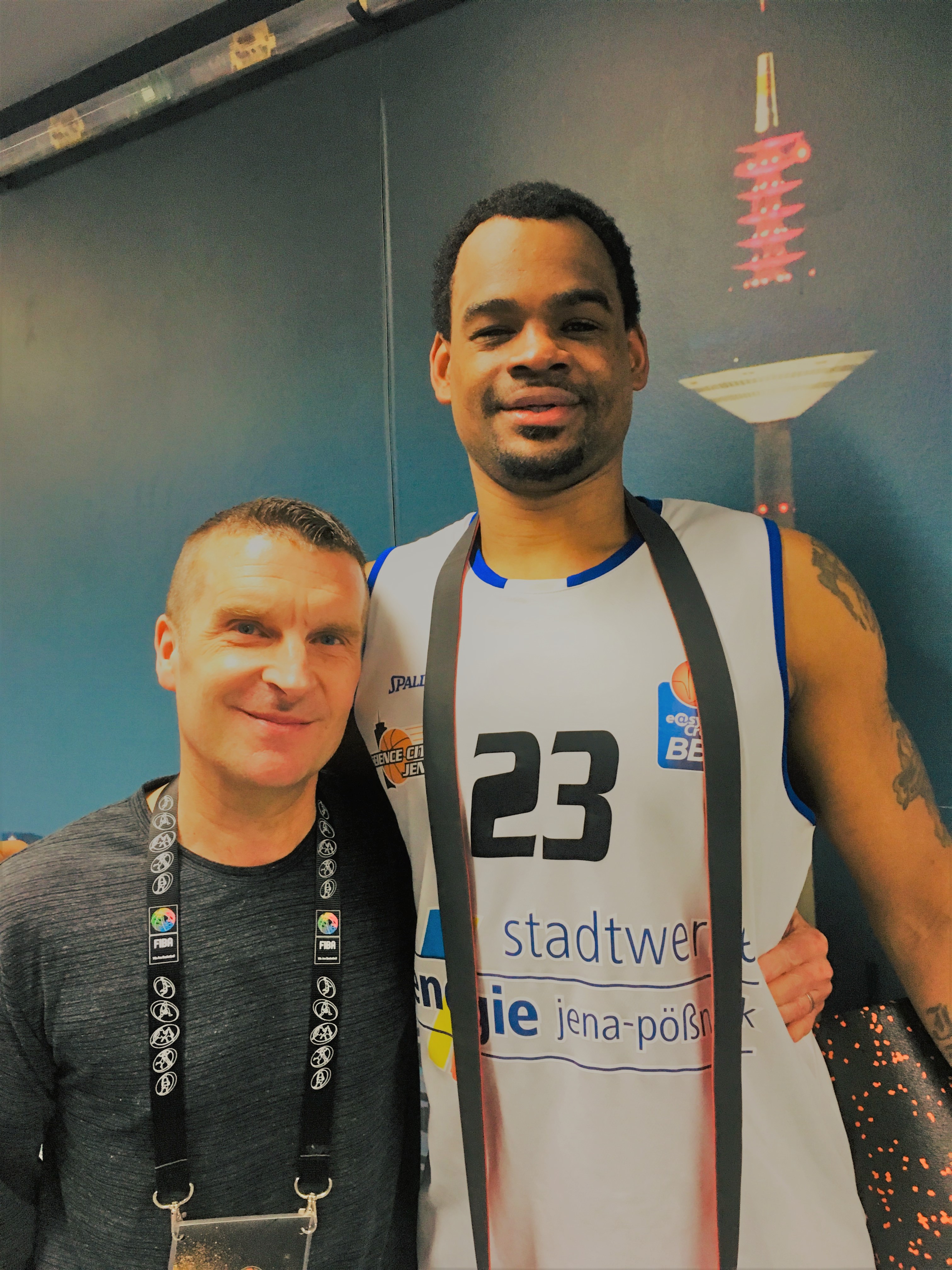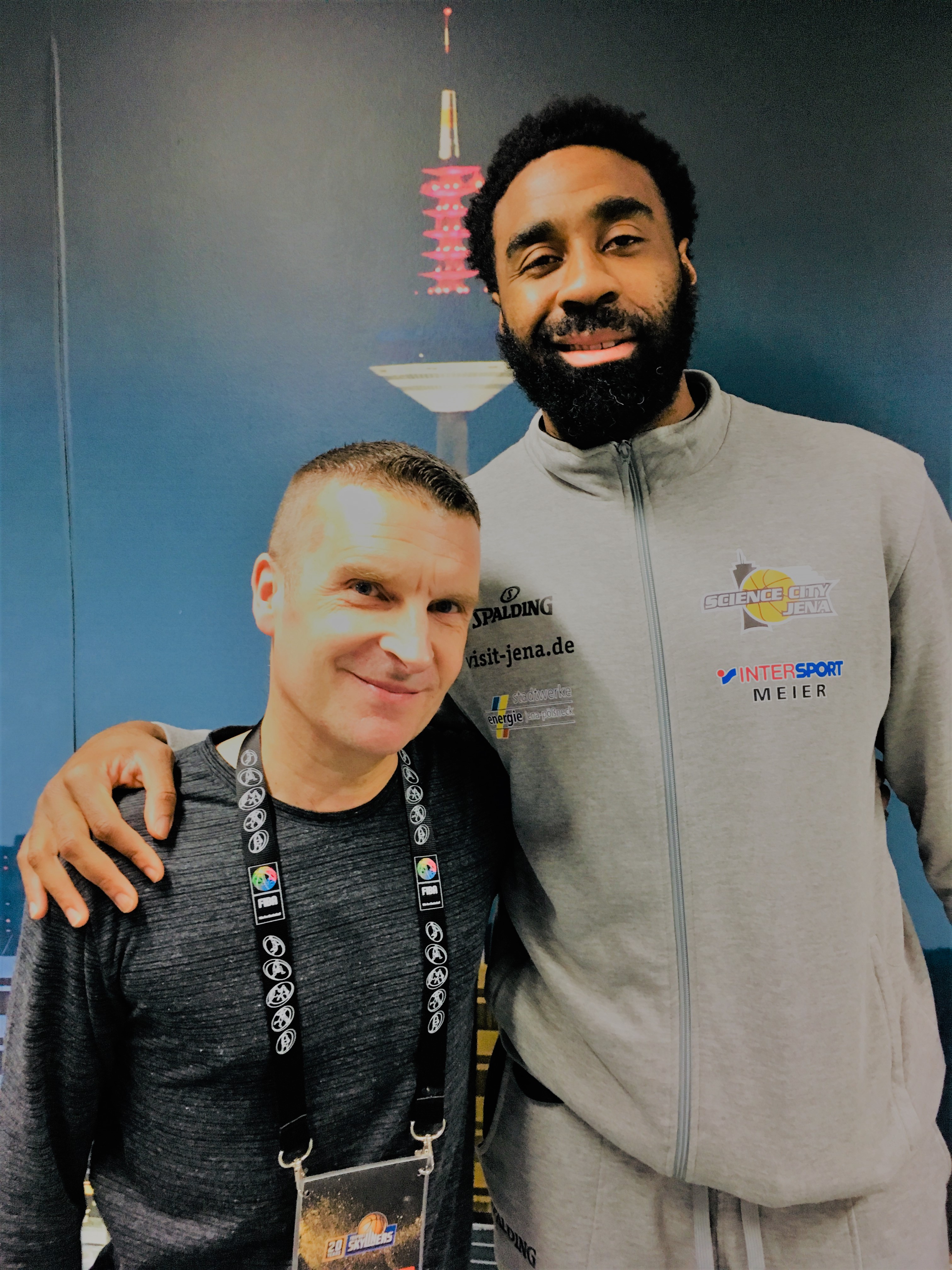 There are countless season highlights each season for the Fraport Skyliners with teams like FC Bayern Munich and Alba Berlin visiting them, and then of course other kind of random highlights that pop up during the season. A huge highlight this season was early in the season as Frankfurt head coach Gordon Herbert dueled and beat coaching legend and NBA and NCAA champion Larry Brown in a Eurocup match that he will never forget or the fans that were able to see this coaching dinosaur before he steps away form the game at age 78. Another massive highlight recently was the magical buzzer beater by Fraport Skyliner lifer Quantez Robertson who sent home Mr Oldenburg Rickey Paulding who most likely had revenge on his mind and another reason to hang on another season in the BBL. The highlights didn´t stop there as another one emerged with the arrival of Science City Jena who continue to present countless BBL legends the last seasons as the guys don´t get any younger, but older and continue to age like fine win with 38 year olds Immanuel Mcelroy, Derrick Allen and Julius Jenkins who combined have 114 years of age. Not to mention 34 year olds Dru Joyce and Martynas Mazeika and 32 year old ex NBA player Reggie Williams round out the fabulous old man wrecking crew of Science City Jena. Old school BBL fans should thank head coach Bjoern Harmsen every day for keeping these legends playing in the easyCredit BBL. The old heads combined for 49 points and had Jason Clark impressed after the contest. “It´s crazy seeing them play like that. They are all in incredible shape and move well. They all still have it and probably will play until they can´t walk anymore”, smiled ex Georgetown(NCAA) native Jason Clark, The Fraport Skyliners came into the contest with a big win in Goetingen and a record of 8-12 and resting in 13th place and with big hopes of a big stretch run while Science City Jena were reeling off a bitter 76-74 loss in Bremerhaven and were in a fight to stay in the league having a 5-17 record and resting uncomfortably in 16th place. After 40 minutes Gordon Herbert strolled by me and just said, It wasn´t a pretty game”. And I replied “yes, but a win is a win”. The Fraport Skyliners played a hard game, defended well, controlled the offensive boards, hit the big three´s when they had to and got many of the loose balls while Science City Jena played with a lot of heart and effort, but just couldn´t get over the hump and that dreaded 10 point cushion in the second half. “This was a huge win for us. With two wins in a row, this will continue to boost our confidence. We had to fight until the end. They had a lot of experience and never gave up. We didn´t shoot the ball well in the first half, but we defended well. Huge tonight was getting many offensive rebounds and the loose balls as well”, stressed Jason Clark. After the loss Lebron James friend Dru Joyce reflected about the loss shortly before stretching. “Frankfurt did a good job attacking us on the offensive boards early. We defended well, but didn´t finish the possessions well. We have to do a better job of that. We continued to fight, but Frankfurt outplayed us”, stressed ex ratiopharm Ulm guard Dru Joyce.