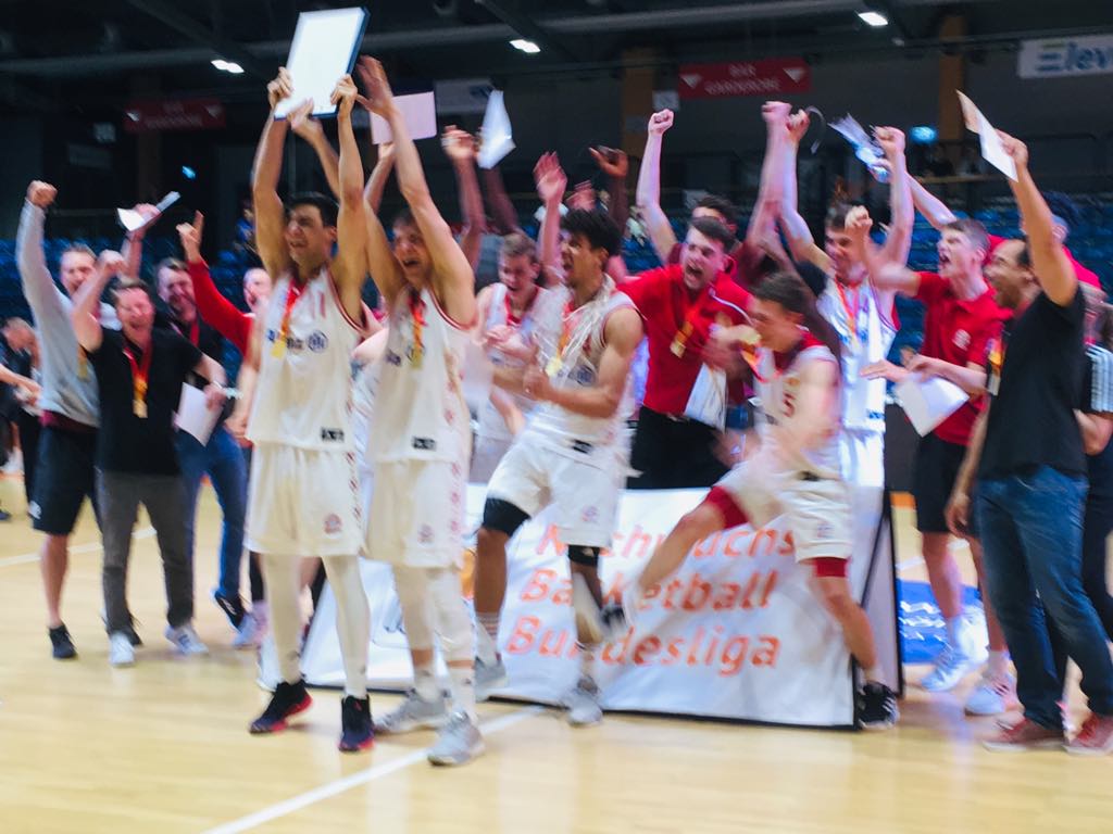 The weekend of May 24-26 was an incredible weekend for FC Bayern Munich in many ways, while for basketball powerhouse Alba Berlin at least in the youth department it was a time to forget and could have been classified as black Saturday. The weekend started off great on Friday as EasyCredit BBL Team FC Bayern Munich woke up in the fourth quarter after receiving a scare in Braunschweig by the pesky Lowen and won game two 84-74 to up their playoff series lead to 2-0 while on Saturday the FC Bayern Munich winning ways continued while for Alba Berlin their U-16 team led by ex German national player Vladi Bogojevic was upset by home team Science City Jena 82-70 where the overall team play and cleverness overwhelmed them and in the U-19 semi-final game they were knocked out by arch-rival FC Bayern Munich 81-76 where they couldn´t handle the ruthless domination by Croatian beast Matej Rudan who exploded for 27 points on 8/16 shooting leading his team back to the final which they handed won since 2017 in Frankfurt. To make matters worst for any anti Munich fans only about 170 kilometers away, FC Bayern Munich were able to celebrate again in another sport football where the soccer department won their 19th cup and had endless celebrations until the wee hours of the morning. On the basketball JBBL and NBBL final game day FC Bayern Munich went into the two final games motivated, but both teams had to overcome two competitive and focused teams with Science City Jena and TSV Troesster Breitengussbach. In the first final in the JBBL U-16 game, the FC Bayern youths took control in the second half and explosive 36 point performance by German Benjamin Schroder helped them capture the title. While in the NBBL final, FC Bayern Munich met a feisty and strong team basketball orientated club TSV Troester Breitengussbach and pulled out an amazing 84-80 victory thanks to a heavenly explosive dunk by Sasha Grant and the leadership by Bruno Vrcic in crunch-time. After the huge victory, FC Bayern Munich cut down the ropes led by ex Ulm forward Jason George and were overjoyed with a great performance despite having some serious injuries and key players out including their starting point guard. Bruno Vrcic played his last NBBL game and saved his best for last leading his team with 22 points and making key baskets in crunch-time. “This was a hard game to win, but we stepped up as a team. You can´t win these games alone, but come together and we did that. We didn´t defend well in the first half, but did it better in the second half playing smarter. We didn´t play as hectic in the second half. I took control in the second half and we came out with the win”, stressed Bruno Vrcic. TSV TroesterBreitengussbach last won the NBBL title in 2013 and had the roster to do it again, but just couldn´t execute offensively as well as they had in the first half and made crucial defensive mistakes at the end. After the tough loss, top Estonian talent Henry Drell Explained what the difference was. “We played a pretty good game, but our offense collapsed at the end and they had more luck”, stressed Henry Drell.