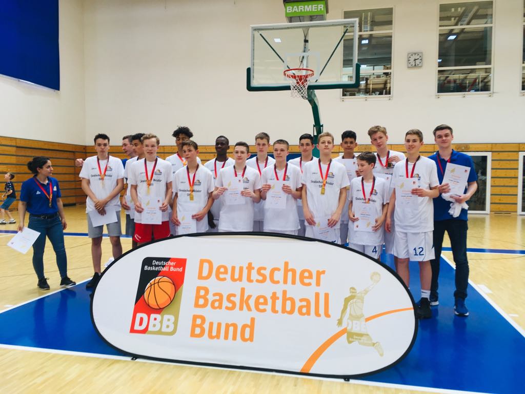 The 9-0 Frankfurt run at the end of the third quarter somewhat deflated TS Jahn Munich as they were unable to get under 10 points in the fourth quarter. The Fraport Skyliners received early production in the fourth quarter with a Phatty lay in and Esser trey while TS Jahn Munich got key support from Grussendorf who scored two buckets cutting Frankfurt´s lead to 76-61. The Fraport Skyliners now conserved their energy and got support from guys like Pruver, but also got the usual contribution form Bonga who scored in the lane again and Phatty scored in bunches making a sweet turn around shot and then making a steal and going coast to coast for the one handed dunk. In the last year two young Frankfurt talents Elijah Clarance and Len Schoormann showcased their dunking abilities so often and with Phatty a new dunking talent has arrived as his athleticism will continue to turn heads in the next years. With the minutes winding down, bot teams inserted some players for garbage time and TS Jahn Munich got two three´s from Ben Hofbauer while Frankfurt got a trey from Holloway and another lay in from Phatty. As the buzzer sounded there was happiness and enjoyment coming form the Fraport Skyliners fans, family and friends of the young boys as their long season of hard work had paid off. New Fraport Skyliner head coach Sebastian Gleim who helped shape the Skyliners youth program in the last years was very happy for the success of the young kids. “I am really happy for the organization. Frankfurt defended well and moved the ball well. They made a push at the right time at the end of the third quarter. I came here five years to help improve this section of the youth program. I am really happy for Thomas Koch who came with me from Hamburg five years ago. His success is deserved and it is nice seeing him and the boys reach the peak of their work. Winning this title had no priority. Even if we hadn´t won today, we would still have these talents for the next years and continue to help them develop”, stressed Sebastian Gleim. Jamaal Phatty led the Fraport Skyliners with 32 points. Joshua Bonga added 24 points, 15 rebounds and 6 assists. Sergio Grothe added 10 points. TS Jahn Munich was led by Tin Udovicit with 23 points, 8 rebounds, 5 assists and 4 steals and Alan Devries added 16 points. The Fraport Skyliners shot 50% from the field and 40% from outside and had 57 rebounds(23 offensive rebounds) and 26 turnovers. TS Jahn Munich shot 36% from the field and 31% from outside and had 35 rebounds and 19 turnovers.