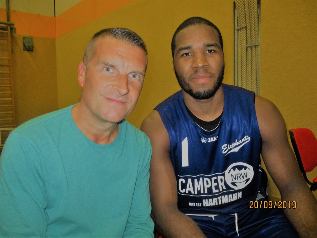It had been more than five long months since the Dragons Rhondorf last played an official league basketball game in mid April closing out the season in fine fashion ousting the RheinStars Cologne in the rambunctious Dragon Dome, but couldn´t save their season as they stepped down to the Regionalliga. The long waiting was finally over as the club started a new chapter in the Regionalliga West. They didn´t come out of the starting gate well losing their first season game on the road in Wulfen 88-80. In that game, they were unable to consistently defend at an acceptable level and just had massive problems with timely execution. A good note was that they scooped down an impressive 24 offensive rebounds. Their opponent at home the New Elephants Grevenbroich also started the season on a sour note losing to Dorsten 87-81. They had absolutely no remedy how to stop Adam Picket who scorched them for 32 points and couldn´t take care of the ball coughing it up 22 times which was a big cause for leaving the court as the losers. The Dragons Rhondorf were ready for the challenge and both teams were reeling for a win and the Dragons had some short term history on their sides as they had won two of the last three home openers in the last years. Basketball was finally back in the Dragon Dome as the home town team didn´t disappoint as they came back from a tough defeat and had better execution on offense and cleaned up some things on defense and rolled to a 85-72 victory over the New Elephants Grevenbroich. There was that huge positive feeling again in the Dragon Dome and many had big smiles including import player Curtis Hollins who had much to smile about as he demonstrated his vital leadership qualities helping lead the team to the win with a Westbrook like filling of the stat sheet with 26 points, 11 boards, 4 assists, 3 steals and 1 block. It was just another normal day at the office for Hollis. “Key for the win was playing defense for the whole game. Playing good full court defense and playing help side was big for our self confidence. We knew that our offense would come with good defense. It was a normal day at the office for me.I try to do as much as possible for my team. They also did a good job finding me”, stressed Arlington, Texas native Curtis Hollis. After the loss a demoralized Jahad Thomas who was a star at Umass-Lowell(NCAA) had that look on his face that could have told a 1000 depressing stories, but he was professional enough and reflected on the game as best he could. “I felt that we fought well tonight. We were undersized. We need to play better together. When there is a mis match, all the guys have to be on the same page. We played defense well, but just couldn´t put the ball in the basket. I thought that we played well as a unit and stuck together which is important in a long season. I need to play better on offense and defense. When I do that then I can take the team to a new level. Once we clean up a few things all will fall into place”, warned Jahad Thomas.