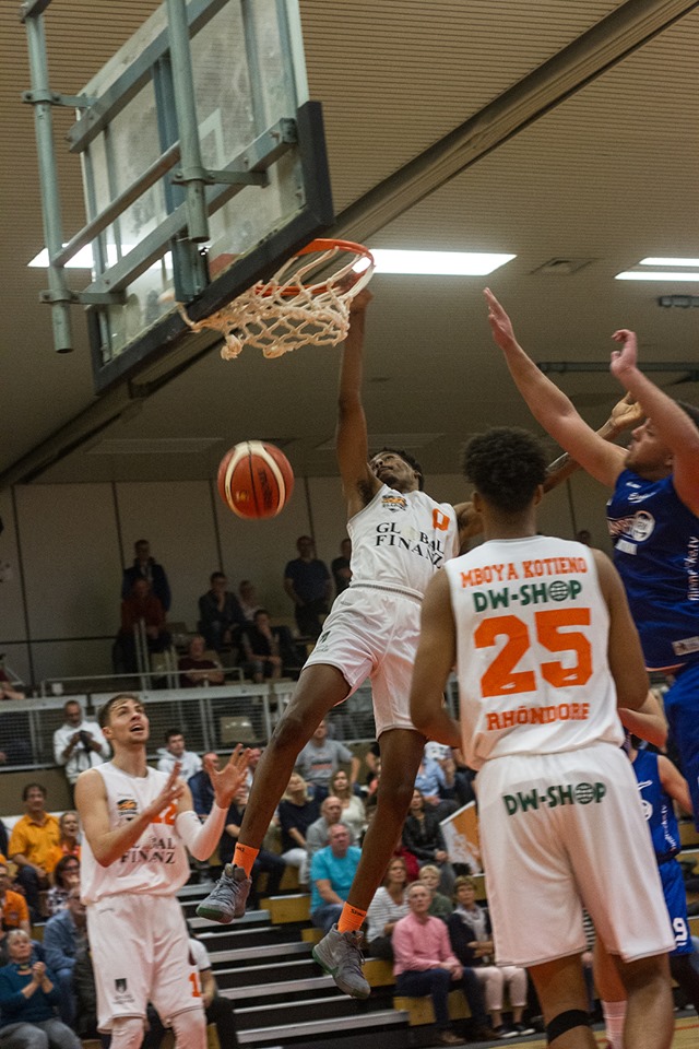 Despite some lackluster first minutes in the third quarter by the Dragons Rhondorf where they sat back and watched the Ryon Howard show who helped the team carve into their lead, they stayed composed and captured themselves and broke free again having a double digit advantage after 30 minutes. The New Elephants Grevenbroich came out strong and reborn after the break as Ryon Howard continued to be the go to guy and contributed 8 points to get his team within 4 points trailing 46-42. A big strength of Howard´s game is his great rebounding skills and his timing and anticipation is excellent, but he also has that wonderful jumper and he hit three of them. The New Elephants Grevenbroich would have been even closer if they hadn´t relinquished a three pointer to Anish Sharda. Rhondorf had lost intensity at both ends of the court in this opponents run and had unneeded turnovers to allow them back into the game. But the Dragons Rhondorf remained cool and composed which also had to do with the keen leadership qualities of Hollis who is as composed on the court as a ballerina is when doing her routine. Basketball remains a game of runs and now it was the turn of the Dragons Rhondorf who escaped on a 8-0 run to lead 54-42. In the run they got a huge three from Sharda which sparked the Dragons and they then stepped up their defense getting big defensive plays from Hollins and De OlverairIn this case the three sparked the defense, but often in the game it was the very much improved defense that helped get the offense going. Hollins who can do so much on the court also displayed his suaveness on the rim making an easy tap in using his long arms to his advantage. The New Elephants Grevenbroich never gave up and made a little comeback down the stretch getting two baskets from Jahad Thomas, but Rhondorf kept the intensity up and held on to their double digit lead. They got a vital transition bucket from ex FC Bayern Munich German Killian Binapfel getting the lob pass from Hollis as the Dragons Rhondorf led 59-49 after 30 minutes. “Howard got going at the start, but we then defended better and got stops”, added Curtis Hollins. “Howard got us going, but we then got down on ourselves. It was a game of runs. I felt that we did a good job on defense getting stops, but we just couldn´t score more. I have to be more aggressive”, warned Jahad Thomas. The Dragons Rhondorf shot 46% from the field and 41% from the parking lot and grabbed 32 rebounds and had 12 turnovers while the new Elephants Grevenbroich shot 38% from the field and 28% from the parking lot and grabbed 27 rebounds and had 7 turnovers.