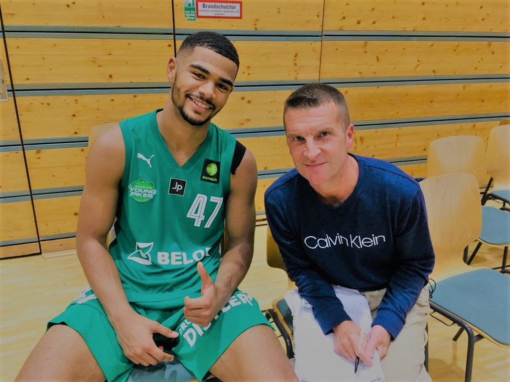 The Baunach Young Pikes continued to control the game in the second quarter and led by as much as 15 points. Baunach had a nice offensive rhythm and quickly got early baskets from ex Ludwigsburg forward Mateo Seric and Marvin Heckel while Frankfurt also was experiencing inconsistency from the free throw line as Baunach led 25-13. Frankfurt had problems with the Baunach on ball pressure and couldn´t hit the ocean while not having that much needed go to guy. Basketball wouldn´t be basketball with out a run and the Fraport Skyliners Juniors finally had one as ex FC Bayern Munich guard Bruno got going nailing a trey and made a lay in while Jaz Bains also connected from outside cutting the Baunach lead down to 27-21. Even if Frankfurt got some offense going, the Baunach Young Pikes always had the right answer to combat their runs. Baunach closed out the second quarter with a lethal 10-3 run to have the 37-24 advantage at the break. Frankfurt was inconsistent and couldn´t prevent the guests from getting easy buckets on transition. In the run, the Baunach Young Pikes got key transition baskets from Moritz Plescher and Brandon Tischler and Swedish big man Felix Edwardson who played 75 Pro A games with Baunach nailed a three pointer. “Frankfurt wasn´t getting into their sets well and weren´t moving the ball well- They also were unable to find the mis matches and weren´t aggressive on the boards”, stressed ex Auburn(NCAA) standout Quantez Robertson. The Baunach Young Pikes shot 48% from the field and 33% from the three point line and grabbed 24 rebounds and had 10 turnovers while the Fraport Skyliners Juniors shot 33% from the field and 22%from the three point line and grabbed 11 rebounds and had 6 turnovers.