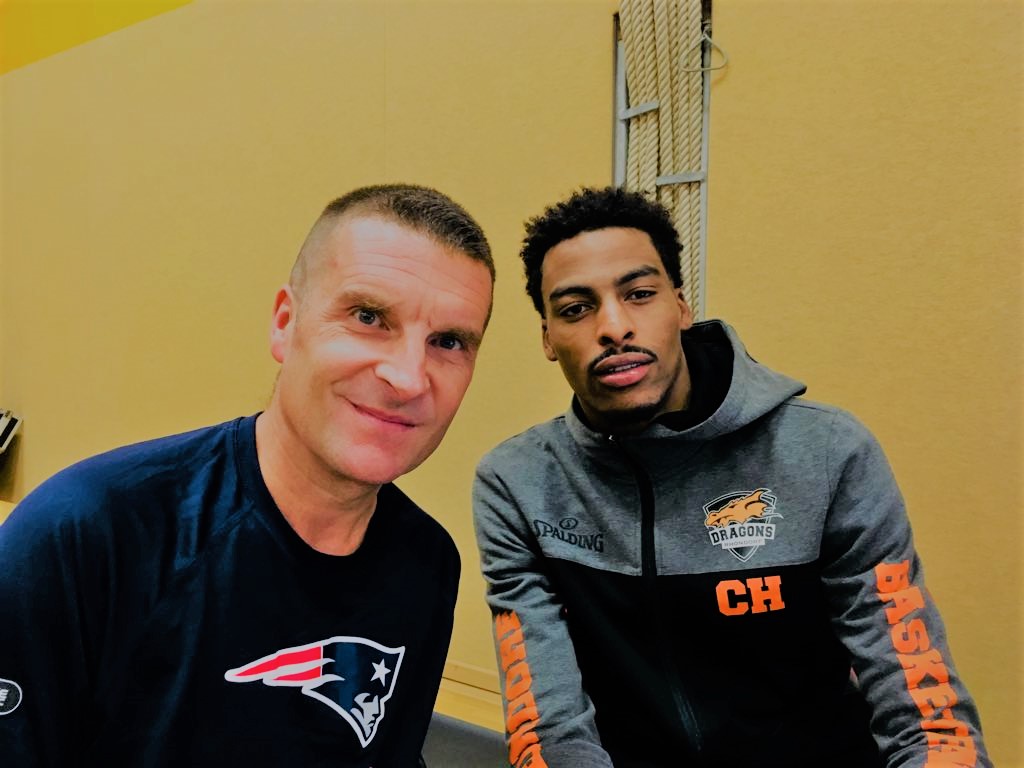 It might have been two weeks since the last home game and victory against BBG Herford, but so much has happened in that time. With the ambitious club Dragons Rhondorf wanting to get back to the Pro B, losing the way they were and giving up so many points was unacceptable which led to turbulent times in Dragon country. A day before an important cup game, the club dismissed head cocah Markus Rowenstrunk and Yassin Idbihi took over. Ibihi changed a few plays, but couldn´t change much, but the team still should have won, but had a bad night while the second Regionalliga team had a great night and the Dragons didn´t come to terms with the aggressiveness. And they didn´t have much time to recuperate as 24 hours later, they had to play a league game on the road against Hagen-Haspe, but the team stuck together and exploded winning 111-81 as five players scored in double figures. The defense still remains a work in progress, but it´s coming along. Two days before the game against Herten, the club announced a giant transfer bringing the experienced 37 year old Spanish point guard Enric Garrido Foz. He poured in 19 points and dished out 6 assists in a loss in Rhondorf at the begin of the season. His quickness and aggressiveness along with his good organization of the game stuck with you. He now joins a back court with Anish Sharda who is also 37 years old. Herten came into the game with a strong 5-2 record, but had lost their last two games against the RheinStars and a bitter 67-66 los at home against Dorsten. On a rainy Saturday night, two playoff contending teams met face to face in the Dragon Dome and it was a lightening big run by the Dragons Rhondorf right at the start of the gun that set the tone of the game as the Hertener Lowen played catch up basketball the whole night losing 90-77. Ex FC Bayern Munich 2 forward Killian Binapfel led all scorers with 20 points and his 11 points in the first quarter sparked the Dragons Rhondorf to never look back for 40 minutes. After the big win Texas native Curtis Hollis reflected on the reasons for the win. “We defended hard and never gave up anything easy. Coach Idbihi is a no excuse guy. We had to get the job done for 40 minutes. We played the passing lanes well and got the rebounds and limited them to one shot. We worked on transition defense all week. It worked well tonight. We also changed up our offense a bit running more ball screens and having more open space”, stressed ex Houston Baller(JBL) guard Curtis Hollis. Hertener Lowen center Dijon Smith had a strong game with 19 points and was the teams work horse working hard on the boards knew that they can´t repeat another poor start like that in the future. “We weren´t ready to play. We started off bad and couldn´t execute on offense or defense”, stated Herten center Dijon Smith.