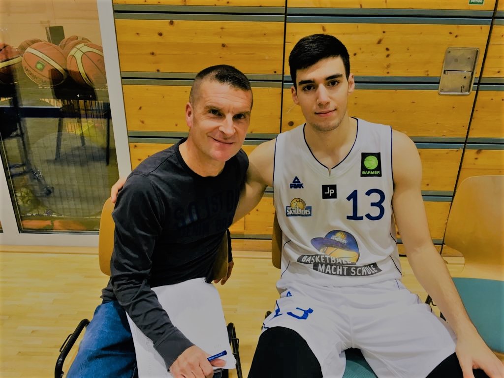 Early in the second quarter German Kristian Kuhn was inserted and the game changed as he led the Scanplus Baskets on a 10-0 run scoring 8 points and they started to take control and wouldn´t look back. The ex MBC center who began to play basketball at age 17 and played 24 BBL games scored all 4 buckets easy in the paint. It was here that the poor help defense started and overall 1-1 defense. But the guests also played with severe physicality that the Frankfurt young players couldn´t match. Even if Gruehn broke the 10-0 Scanplus Baskets run, Kuhn was still aggressive and on fire as he scored two more baskets as there was absolutely no stopping him. Kuhn´s stat line at halftime read 14 points and 5 rebounds in 10 minutes. Mallory was kept in check, but the Scanplus Baskets showed that they have so many weapons that anyone can step up at any time in a game. Mallory came into the game averaging 11,4ppg and 8,4rpg and isn´t near his stats from his previous teams, but it´s obvious that when you have an abundance of scoring options that you probably won´t put up the dominant stats. “It doesn´t matter who it is on this team, but anyone can step up on any given night. It´s usually who gets hot gets fed. That was the case with me tonight. I won´t be sad if my stats go down”, stressed American Lamar Mallory. The Scanplus Baskets also profited from Frankfurt getting early 5 team fouls and got free throws from young German Niklas Moebus and Lamar Mallory leading 39-27. German Alvin Oniiya hit a clutch three pointer in the last seconds as Frankfurt trailed 39-30. “They started to dominate inside. They made easy baskets. We didn´t make anything difficult for them”, stressed 2 time NBBL champion Brno Vrcic. The Scanplus Baskets shot 42% from the field and 20% from the three point line and had 21 rebounds and 5 turnovers while the Fraport Skyliners Juniors shot 30% from the field and 18% from the three point line and had 17 rebounds and 8 turnovers.