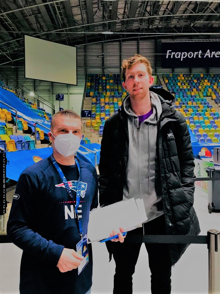 I had the privilege of seeing the ex Penn(NCAA) standout Michael Hakim Jordan play for the first time in the 2005 easyCredit playoffs as he bowed out against the Deutsche Bank Skyliners with the Artland Dragons. I would continue to cover his illustrious playing career in Germany all the way up to 2011 when he retired and saw him win the BBL title with RheinEnergie Koln in 2006 and also covered his game when he won the German assist crown in 2009 and when he played with Phoenix Hagen, MBC and Giessen. He didn´t take a long break between being a professional and taking the next step in the real world and quickly became an assistant coach with Colgate in 2012 where he helped the Raiders rebuild their program in the 8 years that he was there. The basketball program made big strides in the last years having a 68-34 record in the last 3 seasons and in 2019 the club won the Patriot League title and reached the NCAA tournament for the first time since 1996. His duties included recruiting, player development and coaching which helped him shape and develop 9 players that would go on to play professionally. After 8 successful years at Colgate, he has made the next step and returned home to the city of brotherly love Philadelphia and is an assistant coach at Drexel(NCAA). There was one distinct moment in 2010 where one could have imagined that Michael Jordan could one day go into coaching. It was during the 2009-2010 season and his club then Phoenix Hagen was playing a regular season game in Frankfurt in early spring. Phoenix Hagen wasn´t having a great season and had brought Jordan in to help save a sinking ship in December 2009. Jordan didn´t play that day, because he was injured. I remember conducting some small talk with him before the contest and 20 minutes later, the basketball world would later see the legendary Jordan tantrum in the locker room as head coach Ingo Freyer and assistant Steven Wriedt were still on the bench looking over the stat sheet concerning the 44-27 Frankfurt lead at the break. Jordan strolled into the locker room sporting a Philadelphia Phillies sweat shirt and cap and chewed out his teammates. This amazing locker room tirade was captured for the great basketball documentary Phoenix In Der Asche which followed Phoenix Hagen´s 2009-2010season. Jordan played a major role in the documentary and was all fired up in the locker room as he tried to knock some sense into his teammates. One of his classic lines was “We have 20 minutes. We may not win, but play with some Fu*ken heart. Fuk somebody up”! 10 years later, I still love watching this classic moment as it is one of those behind the doors experiences that you don´t see every day. 10 years later, Jordan is a coach moving up the ladder and has been invited to the Miles basketball Minute Scouting Report. One of the many players at Colgate that profited under his guidance was Will Rayman that plays with German professional team BG Goettingen that won the 2010 Eurochallenge.