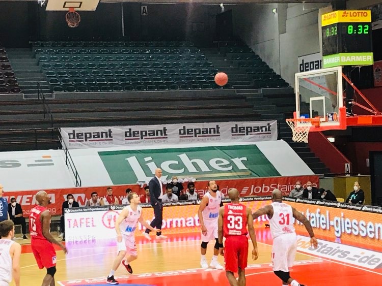 s.Oliver Wurzburg ruled the first two minutes, but after that the Jobstairs Giessen 46ers dominated the last 8 minutes pouring on a lethal 18-0 run to lead 25-16 after one quarter. The guests from Bavaria took the rapid 4-0 lead getting a lay in from American Murphy Holloway who began the season with Al-Muharraq (Bahrain-Premier League) and free throws from American Tyson Ward who played at North Dakota State University (NCAA). But basketball is a game of runs and Giessen just pulled out an offensive arsenal that one seldom sees as they hit Wurzburg for 18 straight points to take the commanding 18-4 lead. In the run, Giessen got incredible production from American veteran Brandon Thomas who scored three three´s. Thomas may be 36 years old and even if he scored only 9 points in 112 minutes in the last four games, the sniper was simply due to get out of his funk and did. Giessen also got baskets from ex Bradley(NCAA) forward Scottie James Jr, Diante Garrett and a three from ex Bayreuth forward Brandon Bowman. Giessen stepped up their defense anticipating very well, getting in passing lanes and playing superb 1-1 defense to force Wurzburg to turnover after turnover which was 8 after 10 minutes. Wurzburg finally began to execute better and get back into the game closing out the quarter with a 12-7 run. Giessen shot an incredible 63% from outside while Wurzburg upped their field goal percentage and shot 45% from outside In the Wurzburg run, they got 7 clutch points from German veteran Florian Koch who displayed his versatile play, a trey by ex NAIA standout Cameron Hunt who had been slowed down well by Wurzburg and a basket from young German Joshua Obiesie. “Giessen capitalized on us not having energy. Thomas hit big shots which got them going”, stated Perry Jones.