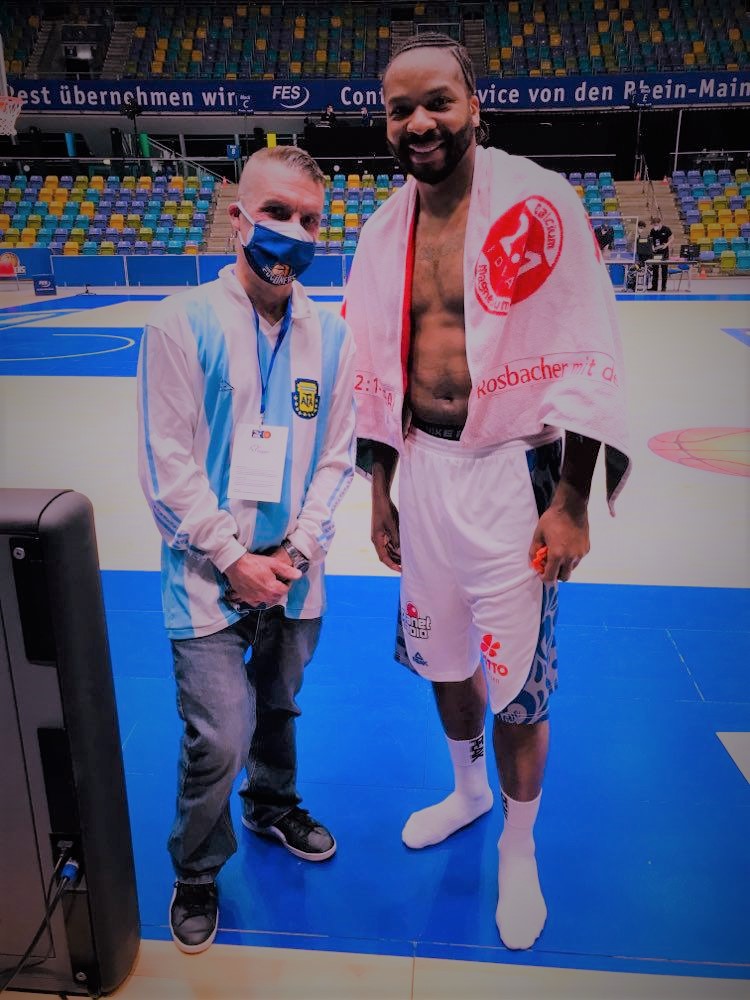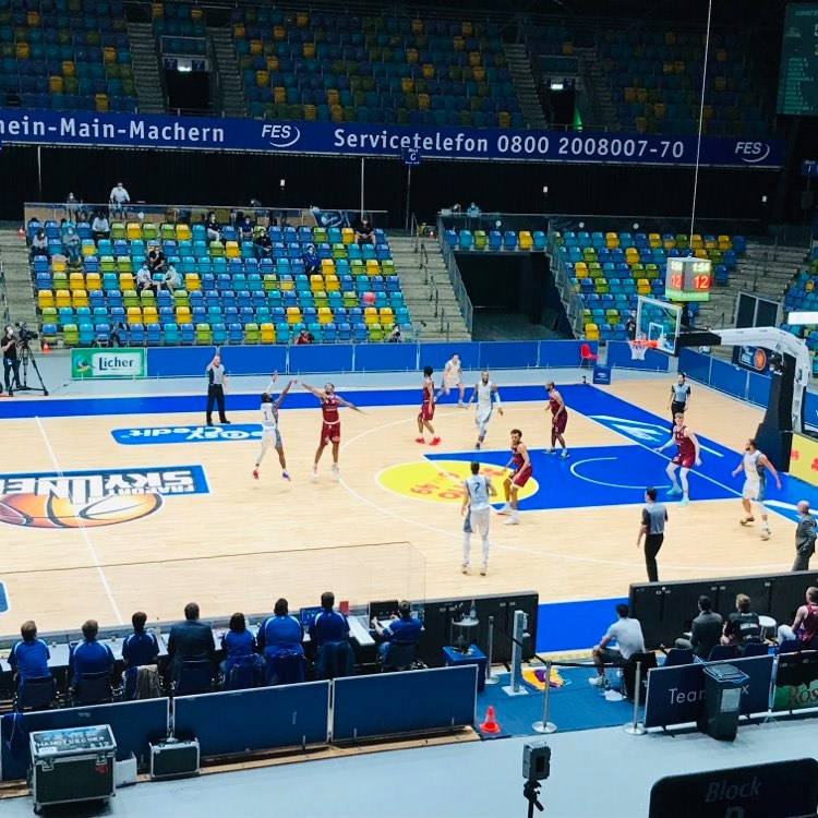 The Fraport Skyliners once again were without point guards Joe Rahon and Konstantin Konga which put the severe playmaking load on the shoulders of rookie Jon Axel Gudmundsson who at times was overwhelmed by the task. But in the early going the Fraport Skyliners didn´t have any execution problems as they stormed out on a 13-5 lead. Ex St Bonaventure great Matt Mobley as usual carried the load unleashing three brutal three pointers. Fraport Skyliner legend Quantez Robertson got the Frankfurt offense going with a steal and lay up and dished out an assist to ex Rasta Vechta center Michael Kessens for the bucket. The Niners Chemnitz began slow, but soon would find themselves going on a 5-0 run to cut the Frankfurt lead to 13-10. Canadian rookie Isaiah Mike got consecutive buckets with a lay in and massive dunk as he flew through the lane. The guests didn´t try their luck from outside, but were dominating the paint area. “That dunk from Miles was pretty cool. When you don´t slide over to help then a dunk like that can happen. We were inconsistent on defense”, stated Quantez Robertson. Frankfurt kept the 20-14 advantage getting buckets inside from Mobley and 2019 NBBL champion Bruno Vrcic, but the Niners Chemnitz had achieved an offensive groove and got key baskets from German Jonas Richter who gave the team a lot of energy. Frankfurt couldn´t hold the lead as the Niners Chemnitz unleashed a furious 10-3 lead in the last minutes to lead 24-23 after 10 minutes. In the run, Chemnitz received unbelievable production from ex Pro B player Terrell Harris who pulled a Mobley scoring all 10 points including two trey´s. The ex Rostock guard had scored 22 points in the first game against Frankfurt and was motivated again too do severe damage. “We were too late on defense and not aggressive enough. They made tough shots which got them going”, said Quantez Robertson.