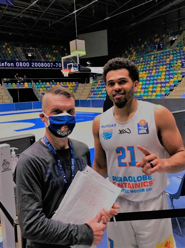 The last time the Fraport Skyliners were on the floor in an official easyCredit BBL game it was Easter Sunday as Quantez Robertson was keeping the Easter spirit alive with some Resee´s Peanut Butter Cups. That was three weeks ago as Frankfurt dismantled the Hakro Merlins Crailsheim 92-84. Then instead of battling teams MHP Riesen Ludwigsburg and s.Oliver Wurzburg, the Frankfurt players were in quarantine and experiencing boring Zoom conferences and nonstop Netflix movies. They hadn´t practiced in 17 days and only had one team practice before the game against the Syntanics MBC. MBC on the other hand were sporting a 1-2 record since Easter Sunday, but also had beaten tough team Crailsheim and lost a two point heart breaker to the Niners Chemnitz. The Fraport Skyliners came into the contest in tenth place with a record of 11-16 and the playoffs a real long shot while the guests from Weissenfels entered the Fraport arena with a record of 8-22 and in 16th place and were in dire need for a win to help their chances of remaining in the BBL. The game was a fierce battle and the guests had to rely a lot on the output of American point guard Quinton Hooker who exploded for 37 points his second most as a professional after scoring 40 points as a rookie in Poland guiding the Syntanics MBC past The Fraport Skyliners 81-76. With easyCredit BBL top scorer Michal Michalak missing due to COVID, somebody else had to pick up the slack and Hooker did an incredible job scoring 24 more points than his season average and carrying his team from the start to the end. Even if Hooker was a massive part of the success, it was a team effort. “We knew how important this game was. We knew that if we could escape Frankfurt with a win then we would be a step closer to remaining in the BBL. Despite missing three players, we played with a lot of energy. We did a great job believing we could win this game until the end. Even when they took the lead, we were able to come back. We had some incredible individual performances”, stressed Syntanics MBC head coach Silvano Poropat. The Fraport Skyliners played a pretty good game considering they had been away from the court for 17 days and could have won the game at the end, but a turnover and offensive rebound form MBC cost them the game. “I thought we gave overall a good performance considering how long we didn´t practice. We had no rhythm in the first half, but found it in the second half. We needed to give more effort at the end so that we could of won this game”, stated Fraport Skyliner guard Jon Axel Gudmundsson. “It was a total team effort. All played hard and we moved the ball well. We made some big defensive plays at the end that gave us the win”, said MBC guard Quinton Hooker.