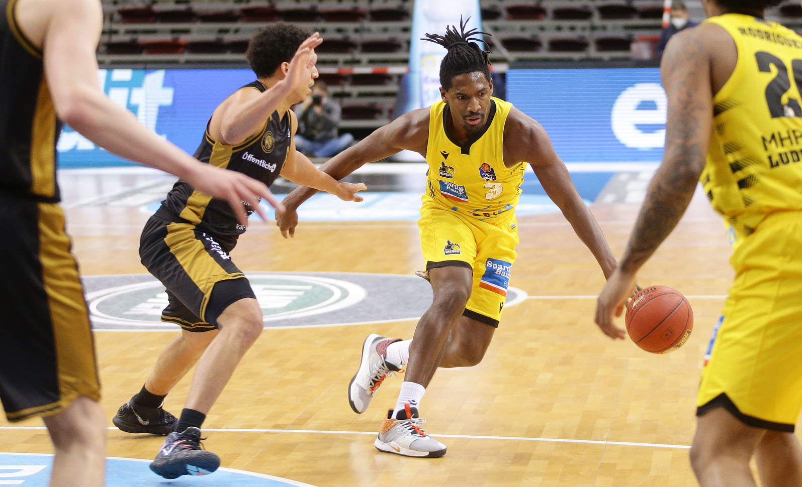 Jaleen Smith (193-PG-94, college: UNH) is a 26 year old 193cm guard from Freeport, Texas that is playing his fourth professional season and second with the MHP Riesen currently averaging 15,7ppg, 5,2rpg, 5,5apg and 1,8spg. Last season he played 28 games averaging 10.7ppg, 3.6rpg, 2.4apg, 1.6spg, FGP: 53.1%, 3PT: 33.6%, FT: 82,8%. In 2018-2019 he played with the MLP Academics Heidelberg (Germany-ProA) averaging 12,7ppg, 3,9rpg and 2,7apg. In his rookie season with Heidelberg he averaged 7,6ppg, 2,8rpg and 2,9apg. He had a stellar four year career with New Hampshire (NCAA) from 2013-2017 where he played a total of 120 NCAA games. He improved his scoring, rebounding and assists average each season and as a senior he played 32 games averaging 15.8ppg, 6.4rpg, 4.3apg, FGP: 52.4%, 3PT: 35.8%, FT: 78.1%. He spoke to germanhoops.com after the 101-98 game one victory over FC Bayern Munich.