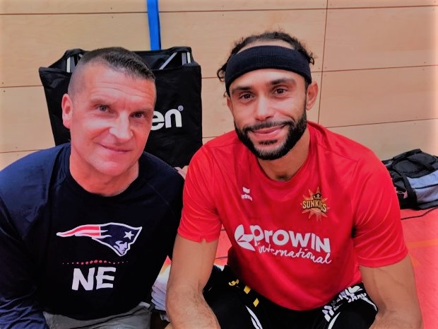 With the exception of a few games in June in a special tournament to crown a new Pro B team, there hadn’t been a lot of basketball in Limburg in the last 19 months due to the pandemic. The Regionalliga season was cancelled last season which left a very sour taste in the mouths of the hardcore basketball fans in the Limburg region. But the long wait finally ended as the 2021-2022 season finally commenced against the Saarlouis Sun Kings. Some things never change with Limburg basketball as the famous Stahlbohm family just don’t go away and continue to support basketball like crazy with the father son duo of coach Danny and son player Justin continue to be the heart and soul of the organization. But one thing was different as the club changed their name and now are called Bona Baskets Limburg. Right on the first game day, they welcomed a legend into their living room with Ricky Easterling who is in his 14th season with the Sunkings at age 37 and without a doubt belongs to the greatest Regionalliga players ever to play in Germany. Just being able to see a player like that still do his thing at that age is an enrichment. The Bona Baskets Limburg wanted to begin the season out with a bang and did scoring 120 points, but couldn’t find that defensive intensity and consistency from the past summer and pre season battle against Pro A team Kirchheim Knights losing a wild shoot out 122-120 OT win. It was one of those special games that had an extra lot of scoring, a weird time out of 15 minutes as the gym lost power and a lot of heart and passion from the players. After the big season opening win Mr Regionalliga Ricky Easterling who had another normal day at the office with 27 points reflected on the crazy victory. ‘I remember a game like that a few years ago here. This game is on the top of my list of crazy games I have played. This was a collective win and we fought hard on offense and defense. We stepped together in tough times all through out the game’, stressed ex BG Karlsruhe guard Ricky Easterling. For the Bona Baskets Limburg, it was a very bitter shocking loss. ‘This was one of the more crazy games that I have ever played in. Both teams were hitting a lot in the second half. This game was good promotion for the sport. They took advantage of the mis matches and we couldn’t stop Lang. Also our zone wasn’t that good either’, stressed Bona Baskets Limburg captain Justin Stahllbohm.