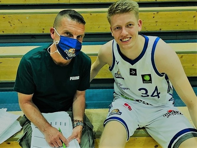 It was a long and extended summer period for the Fraport Skyliners Juniors as their 20-21 season ended early in March. As usual they have a very deep roster with many young guys and also kept a number of guys who have been there for years like Konstantin Schubert, Leon Pullen, Alvin Onyia or Jordan Samare, but also added new youngsters like Nils Leonhardt, Lorenz Brenneke and Devin Jacobi, and brought back Felix Hecker and added veteran Marco Voeller who will help out like Marius Nolte did some years ago when he ended his BBL career. The always ambitious club EPG Baskets Koblenz had a disappointing 20-21 season where they wanted to play for the Pro B title. Like last season they built a very potent roster with new players Dominique Johnson, Marvin Heckel (190-PG-97)l, Shembari Phillips and Leo Saffer while also keeping veteran Brian Butler and young gun Lukas Meyer. New head coach Mario Dugandzic hopes to carry the team to the playoffs and make a run in the post season. While Frankfurt’s goal is always to continue to develop it’s young players for higher challenges. On an untypical Tuesday night, both teams opened up their seasons in Frankfurt and the home team stuck with the favorite EPG Baskets Koblenz for a half, but in the second half the guests showed their true colors and set an explosive fourth quarter offense scoring 37 points and getting the easy 98-72 win. After the win a satisfied Ben Marello explained why his team could get the win. ‘We had a few moments where we had a lack of focus. It didn’t have anything to do with Frankfurt, but moreover with us. Once we move the ball well we are as good as anyone in this league. We gave a collective effort and played together’, described forward Ben Marello. The Fraport Skyliners Juniors gave a spirited effort, but when push came to shove, the EPG Baskets Koblenz were simply a few classes above them. ‘You have to give a lot of respect to Koblenz. You could see that they are a top team in the second half. When we helped too much, they hurt us with their three’s. We moved the ball well at times and did a good job getting offensive rebounds’, stressed forward Konstantin Schubert.