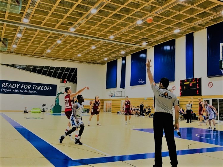 The Fraport Skyliners Juniors started the game with an unbelievable high intensity that FC Bayern Basketball couldn´t match. Their high intensity quickly got their offensive rhythm going which led to sound execution. Frankfurt began with a rapid 4-0 run as ex Hanau guard Felix Hecker scored as did ex Ehingen forward Nils Leonhardt. Munich got some baskets from German Jonas Sauer and Sierra Leon big man Mohammed Sillah, but Frankfurt had this intense groove going on offense which led to a trey by Hecker and another lay in by Leonhardt giving Frankfurt the 9-4 advantage. Frankfurt were anticipating well and getting into passing lanes which led to transition success. The only positive thing the guests were doing was getting offensive rebounds as Sillah made a put back cutting Frankfurt´s lead to 9-6. Even if the game was tight, the teams looked like night and day as Frankfurt then would began an offensive frenzy closing out the first quarter on a 13-0 run to lead very comfortably 22-6. In the run, the Juniors continued to move and share the ball well as ex Wurzburg guard Philipp Hadenfeldt scored in the paint as did Konstantin Schubert and ex Nurnberg guard Matthew Meredith while Felix Hecker dropped his second trey of the first quarter. Frankfurt continued to be a menace on defense bringing that aggressiveness to a new dimension and forcing turnovers. Konstantin Schubert closed out the quarter with a pretty buzzer beater hook shot. “I love bringing the hook shot. I have a good touch and my long arms help me. I´m not stronger than my opponent, but quicker which allows me to use this shot”, stated Konstantin Schubert. The guests shot a poor 18% from the field and 0% from outside, but had the slight 10-9 edge on the boards, but had 6 turnovers while Frankfurt only had 2. “Munich has a lot of very young players. I think that the long bus ride and 0-3 start played a role mentally for their poor start. They had little self-confidence. Munich play very physical and look strong, but they don´t put it together on the court. We played the way that we should at home. We were physical and didn´t give up anything easy”, stated Fraport Skyliners NBBL coach Miran Cumurija.
