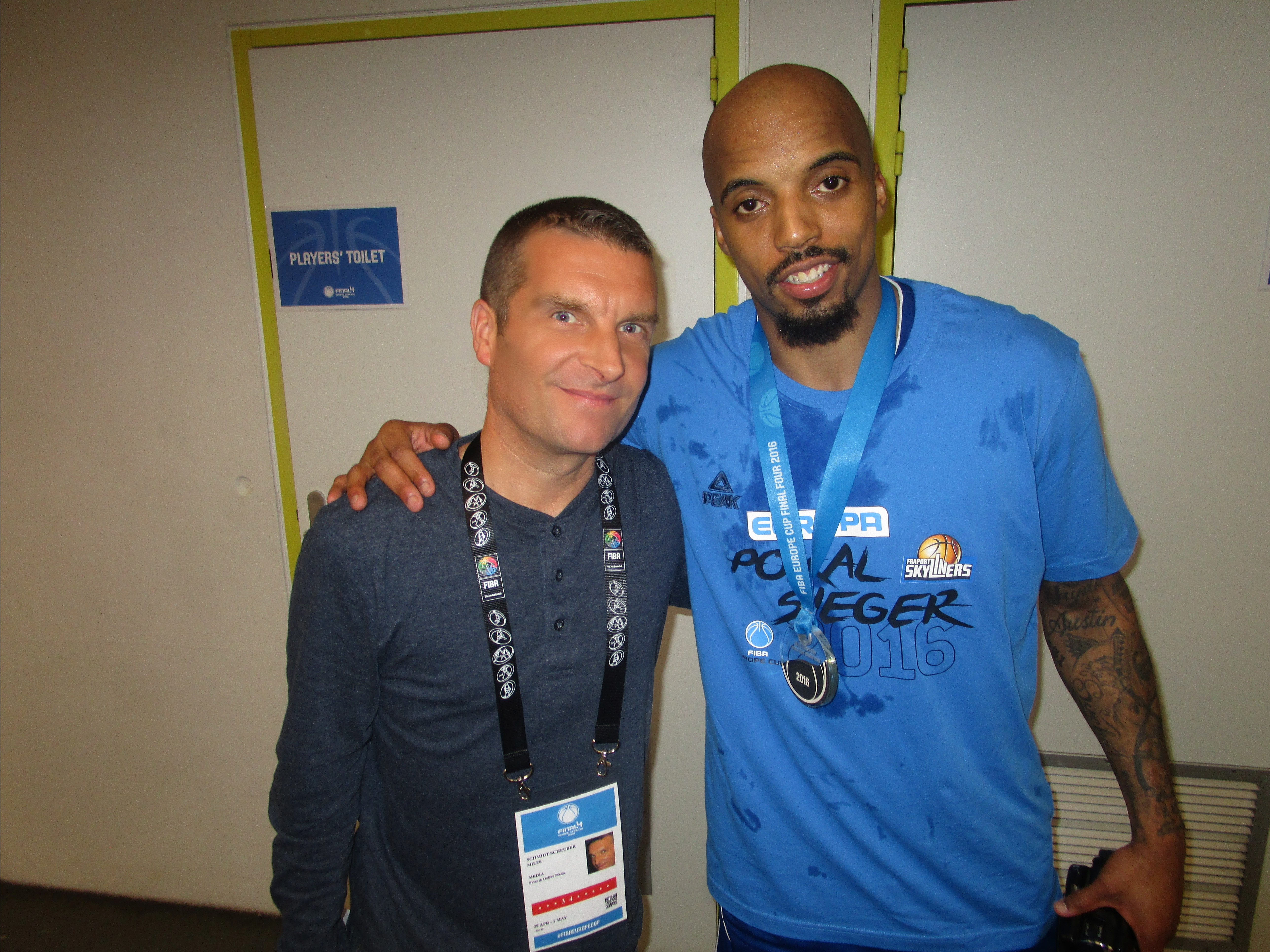 It is more than 5 years ago when the Fraport Skyliners hoisted their third title and first international one with the Fiba Europe Cup in Chalon, France. Skyliner point guard Jordan Theodore had been contained very well for the first three quarters, but in crunch-time the ex Seton Hall(NCAA) guard finally broke out of his shell and took over the way great players do. He hit a clutch three from the top of the key and nailed three free throws to seal the win. It is always amazing how well players can still remember certain points of a game. You ask a Boris Becker about one of his Wimbledon wins 30 years ago and he can still remember crucial rallies at 4-3 in the fifth set. It wasn´t any different for Quantez Robertson. I have two vivid memories from that epic game as the siren sounded. First when Jordan Theodore threw the ball with so much power towards the Le Colisee ceiling and second when Quantez Robertson came over and slapped my hands in celebration of the win as I was sitting court side. But the Skyliner legend also had vivid memories of the last minutes of the thrilling 66-62 victory. As always Tez was very diplomatic about whether the team would have won without Jordan Theodore. “He definitely was a key player down the stretch as he made big shots. But it was also a collective team effort. John Little played some great defense on Chris Wright and the big guys with Joe Voigtmann, Danilo Barthel and Mike Morrison also did a good job. They also got good effort from Brandon Davies and Malik Wayans, but we all stepped up as a team and buckled down on defense”, remembered Quantez Robertson who last saw the movie Sonic the Hedgehog. With all the problems that the Fraport Skyliners are having now, it would great if Jordan Theodore could return to his old stomping ground, but it would unfortunately be more of a dream happening than it being realistic.