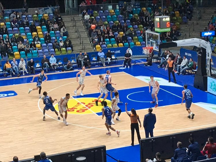 In the second quarter Brose Bamberg achieved their second biggest lead of the game with 14 points, but the Fraport Skyliners staged a big run only to be slapped right back with a run and trail 43-32 at half-time. The Fraport Skyliners actually began the second quarter positive surprising Bamberg with a rapid 5-0 run to cut the guests lead to 23-19. In the run, ex Purdue (NCAA) center Matt Haarms used his 221cm length to snag an offensive rebound and make the put back and ex Barcelona guard Brancou Badio nailed a three pointer. Brose Bamberg didn’t let the little burst of fire irritate them as they struck back with a explosive 10-0 to extend their lead to 33-19. In the run, it Was Kenneth Ogbe who continued to display his fine inside out game with a three pointer and lay in while diminutive guard Justin Robinson contributed 5 points with free throws and a trey. Bamberg’s self confidence rose with every new bucket while on defense their pick and role was working well, while Frankfurt had nobody that sought to take responsibility. But when the going gets tough for Frankfurt, there is one player that has proved time in and time out that he can lead a team back it’s Rasheed Moore. Moore took charge again leading Frankfurt on a swift 10-0 run and scored the first 6 points. He scored twice inside and on his second basket fell to the floor and let out a loud cry just like a satisfied lion does after feeding time. Badio also scored as did 18 year old German Alexander Richardson who finished with a hard two handed dunk as Frankfurt trailed only 35-30. But as is so often the case, Frankfurt couldn’t keep the momentum and had a quick defensive lapse allowing a trey to Justin Robinson and three free throws and suddenly the lead was double digits again 41-30. Both teams traded buckets at the end as Bamberg got production from Sengfelder and Ogbe and Frankfurt from Richardson and German national player Lukas Wank. ‘Rasheed played a hell of the game. He spearheaded the come back and gave energy. He hit big shots and helped cut into the lead. I hope that he can ride that and continue you it the rest of the season’, added Will Cherry. Frankfurt did a better job rebounding taking the lead in that department, but had 10 turnovers.