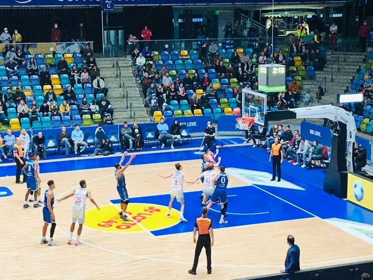 In the third quarter Brose Bamberg continued to control the game as the Fraport Skyliners just couldn’t get over the hump. Both teams found their offensive rhythm as both teams connected from down town. Bamberg got three’s from Heckmann, Dominik Lockhart and Pruitt while Frankfurt got three’s from Lukas Wank who connected twice in a row, but the guests still led 58-43. But basketball is a game of runs and when Frankfurt wants to, they can give opponents problems with their defense and did. The Bamberg offense was just very well oiled and one where Frankfurt had severe problems trying to slow down as they were always late on the made three’s. The Fraport Skyliners showed again that they are able to string together longer stretches of good basketball as they closed out the third quarter with a 13-4 run to trail Bamberg only 62-56 after 30 minutes. In the run, Frankfurt got consistent play from Rasheed Moore once again as he scored on transition and nailed a three which was still a work in progress three years ago in the Pro B, but now is a very reliable outside shooter. Badio also made a catch and pop jumper and Will Cherry made a nice ending to the quarter with a floater at the buzzer. ‘We kept our composure when they made the run we just stuck together on defense’, said Justin Robinson. ‘We were trading baskets. You can do that when your leading, but when your behind like we were, it wasn’t good’, stressed Will Cherry. Frankfurt continued to rebound the ball very well leading 28-20, but just coughed up the ball too much having 15-7 turnovers.