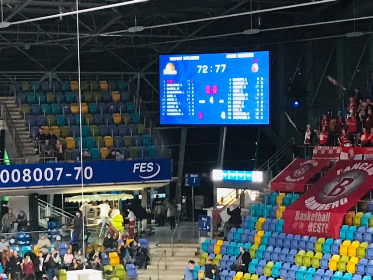 In the fourth quarter Brose Bamberg kept up their old ways always being able to respond well to Frankfurt runs extending their lead to 13 points. But the Frankfurt staged one last comeback coming close, but it just wasn’t enough. The Fraport Skyliners began well getting a basket from Lukas Wank to cut Bamberg’s lead to 62-58, but Bamberg then hit Frankfurt in the mouth with a brutal 11-2 run to lead 73-60. In the run, Bamberg got key three’s from Sengfelder and Heckmann. The Fraport Skyliners made one last attempt of some how turning the game around striking with a 9-2 run to cut Bamberg’s lead down to 75-72 with 7,8 seconds to play. Instrumental in the run was young German Len Schoormann who scored 8 points under the watchful eyes of German national team coach Gordon Herbert. He had had misfortune earlier with three point shooting, but in the run connected once and also added a reverse lay up and runner. Badio also added a runner, but it was all too late. Patrick Heckman added icing on the cake with free throws to seal the victory. ‘They made a good comeback. What was missing in the third quarter, they made in the fourth. They are a good team’, stressed Justin Robinson. ‘We played with good defensive intensity in the second half. We need to start with that and have it for 40 minutes. We are fighting. Our energy is never down. We want to get better and know we have the talent to’, added Rasheed Moore. Brose Bamberg were led by Omar Prewitt (201-SF-94, college: William & Mary) with 17 points. Christian Sengfelder added 14 points while Patrik Heckman scored 13 points. The Fraport Skyliners were led by Rasheed Moore with 21 points. Brancou Badio added 12 points and Len Schoorman and Lukas wank added 11 points a piece. Brose Bamberg shot 45% from the field and 38% from outside and had 28 rebounds and 12 turnovers while the Fraport Skyliners shot 44% from the field and 38% from outside and had 38 rebounds and 19 turnovers.