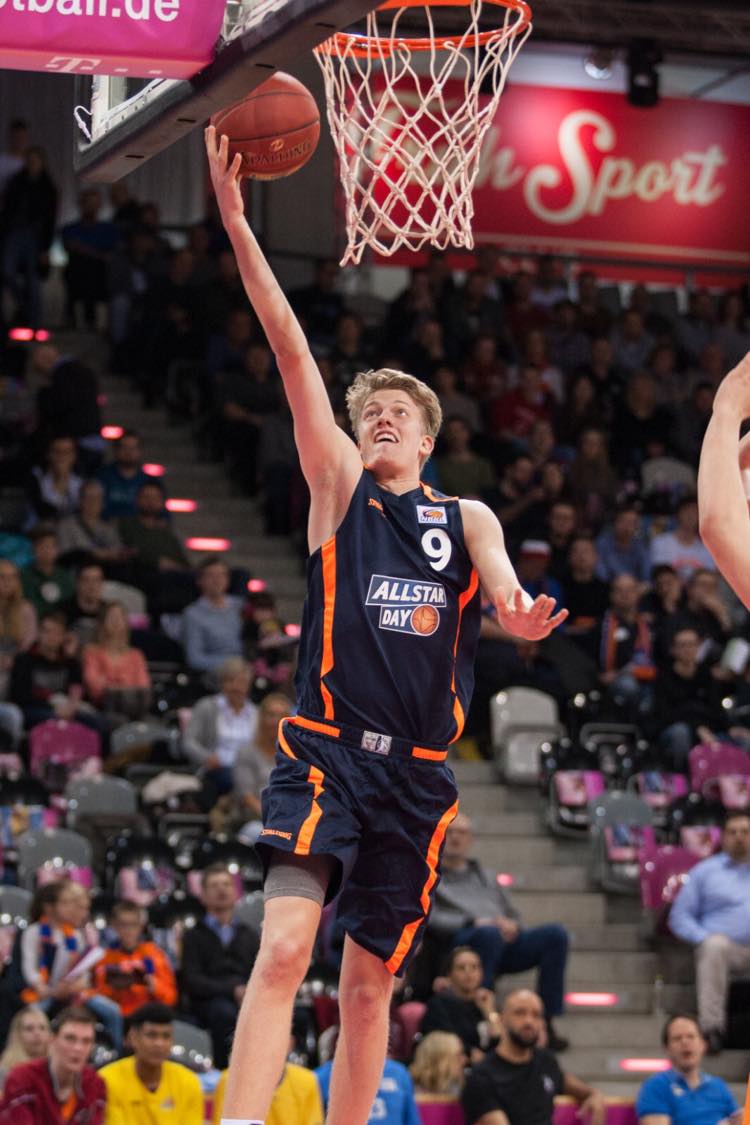 The high flying forward who loves to run transition like a Quantez Robertson played his first full Pro B season in 2015-2016 averaging 14 minutes and 4,8ppg and 3,5rpg per game and right away set his mark in the first game of the season against Lich. In that game, he had to right away take responsibility at age 17 as the club had many sicknesses as a bug was going round. He stepped up playing 32 minutes and recorded his first double double of 12 points and 10 rebounds and added 2 steals and a block. A game like this was unbelievably important for his self-confidence. ‘It was amazing. It helped me to set a good tone for the season and show that I ‘m capable to become a good player for this team’, stressed Konstantin Schubert. He was also so very lucky having so many teammates that were so vital for his early development. Teammates like Niklas Kiel, Garai Zeeb, Stefan Ilzhoefer and Max Merz all became easyCredit BBL players and he couldn’t have found better mentors and young men helping him grow on and off the court. ‘I think all of them had a big influence on me. But if I have to pick somebody, it probably is Niklas or Garai. Because I spent the most time with them because they were my age. And especially with Niklas I worked a lot with because we played a similar position. He was so good, and I learned so much from him. But it was also amazing to share the court with Stefan and Max. With Max I remember one evening sitting in a hotel in Tuebingen around Christmas time. And we decided to go downstairs into the lobby and got a table there and started working on our study stuff. How he managed to transition from the basketball court into the business world is amazing to me and he is definitely a role model to me. In the end I’m just proud to have played with those guys’, stressed Konstantin Schubert. But it wasn’t only the young German teammates that had a massive impact on his game, but there was also the elder gentleman Marius Nolte. I had to gulp when I read that it has been more than 5 years since Marius Nolte played his last Pro B game and retired. I guess I’m getting old and time really does fly. You couldn’t ask for a better guy to have as a teammate than Marius Nolte. I conducted my first interview with him in 2006 in Paderborn and like Konstantin will always have fond memories of the big man. ‘Marius is a great guy. His game was so much about hustle. He just wanted it more than his opponents and he was willing to do the dirty work. He always wants to win. If it’s scrimmage in practice or a real game he always wanted to win. I was able to share the court with him at his last game in the Pro B Final in Urspring. He had an amazing career, and he was one of those guys I took pictures with when I was a kid with a season ticket. I still have a photo of him and myself when I was 14 years old or even younger’, said Konstantin Schubert. He scored in double figures in 4 games that season including hitting Saarlouis for 16 points in a win.