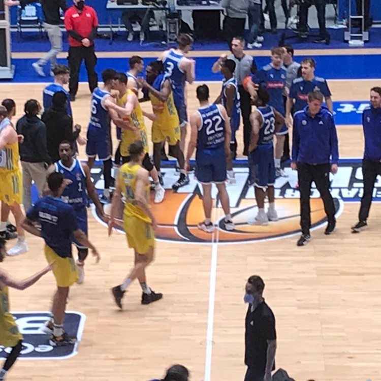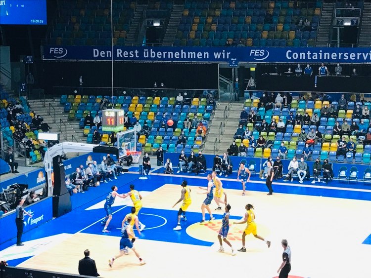 The Fraport Skyliners were without ex NBA player Will Cherry who had back problems. Alba Berlin didn´t take Frankfurt easy at the get go going on a rapid 8-2 lead. They got behind the three point line and got baskets from Maodo Lo and Luke Sikma and 2021 BBL MVP Jaleen Smith dropped free throws. But the Fraport Skyliners didn´t stay in a hole early, but were carried well by ex FC Barcelona 2 guard Brancou Badio who was aggressive and scored 5 points. German national player Lukas Wank contributed a trey to tie the game at 8-8. But Alba Berlin had the smoother game and hit Frankfurt with a 11-4 run to led 19-12. In the run the defending BBL champion got their transition game going with buckets from Jaleen Smith and ex Stanford(NCAA) forward Oscar Da Silva. Alba Berlin also got valuable minutes from 221cm big man Christ Koumadje who got to the free throw line twice and converted a thunderous dunk. Alba Berlin got many easy baskets while Frankfurt weren´t given anything easy. Alba Berlin kept up the pressure down the stretch having the 24-16 advantage after 10 minutes getting five points from German Tim Schneider while Frankfurt got points in the paint from Badio and Mclean. Alba Berlin had 6 turnovers which is very uncommon as they kept attempting lob passes that didn´t arrive and led to turnovers. “We usually make those passes. Frankfurt scouted us well and got deflections”, stressed Jaleen Smith. Alba Berlin shot their usual high percentages from two point with 70% and from outside 50% and had the rebound edge.