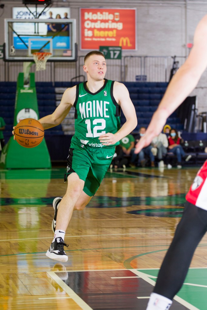 The guard who has Jordan, Bird, Wilt, and Curry on his personal NBA Mount Rushmore then had a dream come true signing with the Boston Celtics farm team Maine Celtics. ‘Being a part of the Celtics organization has definitely been a childhood dream come true. Growing up watching and rooting for the Celtics it was always a dream to play for them as a kid. I know I am fortunate to live out a childhood dream playing for your hometown team and I do not take that lightly’, stressed Eric Demers. He joined a team that had so many guys with NBA experience like Ryan Arcidiacono, Chris Clemons, Luke Kornet, Bruno Fernando, Broderic Thomas or Theo Pinson that he could really get lost in the shuffle, but with time he has made strides especially in the minutes department. ‘We have a unique roster for the G-League. More than half our roster has played in the NBA. It is a tough team to be on as a rookie as far as playing time. I have worked my way into the rotation but I do know I am going to gain a lot of value from this experience with all this NBA experience. Even if it doesn’t fully show this season I know it is going to be very beneficial going forward as a professional basketball player’, warned Eric Demers. He also has had no worries about not being respected. You might think as soon as guys hear division 3 that you won’t be taken seriously, but that hasn’t been the case. ‘I think the way I play the game guys learn to respect my game pretty quickly. I am very proud to represent NCAA 3 but at the same time I want to be known for more than just ‘the D3 guy’. I want to prove myself to be a very good professional basketball player’, stated Eric Demers. He could put on a blind fold and chose a player to be his mentor and he wouldn’t go wrong with the vast collection of experienced talent Maine has, but instead he has picked Ryan Arcidiacono who won a NCAA title with Villanova and played some years with the Chicago Bulls. ‘Ryan Arcidiacono has become a very good friend of mine. It has been great to see how someone like him with his NBA experience carries himself on a daily basis. I have learned a ton from Ryan’, expressed Eric Demers.
