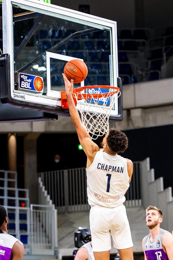Brekkott Chapman (206-F/C-1996, college: Weber St.) is a 25 year old 206cm power forward/center from Troy, Utah playing his third professional season and first with the MLP Academics Heidelberg. He played his first two professional seasons with s.Oliver Wurzburg where injuries plagued him as he played only 20 games and last season averaged 10.7ppg, 3.3rpg, 1.6apg, FGP: 46.4%, 3PT: 29.8%, FT: 85.0%. He began his basketball career at Roy high school. He then played at the University of Utah from 2014-2016 playing 71 NCAA games and averaging 5.7ppg, 2.3rpg, FGP: 49.5%, 3PT: 44.2%, FT: 76.4% and 4.4ppg, 2.8rpg, 1.0apg. he then finished at Weber State playing 60 NCAA games and averaging 10.8ppg, 6.0rpg, 1.4apg, 1.7bpg, FGP: 47.7%, 3PT: 42.3%, FT: 75.0% and as a senior averaged 12.5ppg, 8.5rpg, 1.9apg, 1.7bpg, FGP: 53.8%, 3PT: 43.6%, FT: 74.0%. He spoke to eurobasket after the win over the Fraport Skyliners.