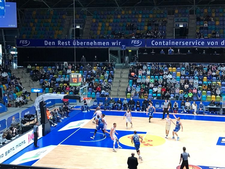 The first quarter was a back and forth affair as there were seven lead changes and at the end of 10 minutes the Fraport Skyliners had the slim 24-23 advantage. The Telekom Baskets Bonn caught the Fraport Skyliners on the wrong side of the bed and exploded on a 13-4 run. Bonn showed their full offensive arsenal led by ex Arizona (NCAA) guard Parker Jackson-Cartwright. It seemed like before ex Alba Berlin center Jamel Mclean could even get totally situated on the bench, the guests had already scored 10 points. In the offensive carnage, Jackson-Cartwright scored twice and every basket was tough which every cm of his 176 frame had to be used. Ex Houston (NCAA) forward Justin Gorham got the guests in parking lot mood draining the teams first trey while ex BC Rytas Vilnius sniper Salius Kulvietis also got hot scoring twice from outside. Frankfurt countered with a Rasheed Moore runner and Len Schoormann back door lay in getting set up nicely from ex NBA player Will Cherry. But basketball displayed again that the game likes to showcase runs as Frankfurt battled taking the 16-15 advantage due to the luxury of a 12-2 run. In the run, the Fraport Skyliners took advantage of Bonn relaxing a bit and stepping up their defense and getting stops and easy buckets. Key in the run was ex Alba Berlin lefty Lorenz Brenneke who contributed 6 points and was the classic finisher inside twice. Frankfurt attacked the paint area getting a basket form Quantez Robertson and two from Moore who also added a massive two handed stuff. From then on there would be six lead changes as no team could escape the other. Bonn continued to let it fly as great role player Skyler Bowlin connected on a three pointer as did Gorham. Frankfurt got valuable aid from Robertson with a three pointer, lay in from Polish national player Marcel Ponitka and three free throws from Mclean. After 10 minutes, the Fraport Skyliners had the slim 24-23 lead. ‘We put more pressure on ball and connected on good looks. We also took advantage of getting on transition and getting easy baskets’, stated Quantez Robertson.