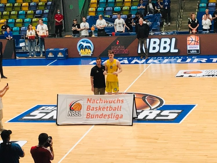 The game was over by the fourth quarter. Young Rasta Dragons head coach Hendrik Grunert allowed some of the guys who didn’t play much during the season like Julius Bronnert, Jonas Gross, and Tim-Felix Buhren to get some playing time. Alba Berlin continued to execute at ease scoring 26 points while the Young Rasta Dragons added only 12 points. No team scored at all in the first few minutes as 8 possessions led to zero points. Alba Berlin continued to play their style going inside and just dominating with their physicality. Rikus Schulte scored twice and Christoph Tilly reached the free throw line twice as Alba Berlin led 89-56. A big strength of Alba Berlin this season was their team play and bench where every guy had a role and fulfilled it. Especially the big men behind Tilly like Janis Berger and Linus Ruff had solid games from the bench as they combined for 16 points and 12 rebounds. ‘They are good players Ruff is very young with potential and has a nice touch while Berger can do it all coupled with good decisions’, stated Christoph Tilly. 204cm big man Gabriel Krstanovic who only averaged 6 minutes per game in the NBBL this season and body wise is a cross between Maik Zirbes and Ivan Pavic got extra cheers in the stands form Alba fans as he made a trey and dunk to seal the win and end the game. ‘He always gives his all. That was the only three he attempted this season and he made it. That made us happy. He works hard and deserves the minutes that he gets’, expressed Christoph Tilly. Alba Berlin had 6 players in double figures and were led by Christoph Tilly with 16 points. Elias Rapieque added 14 points and Jannis Berger 12 points while the Young Rasta Dragons were led by Jegor Cymbal with 19 points and Killian Brockhoff added 11 points. Alba Berlin shot 52% from the field and 32% from outside and had 54 rebounds and 19 turnovers while the Young Rasta Dragons shot 29% from the field and 28% from outside and had 33 rebounds and 31 turnovers.