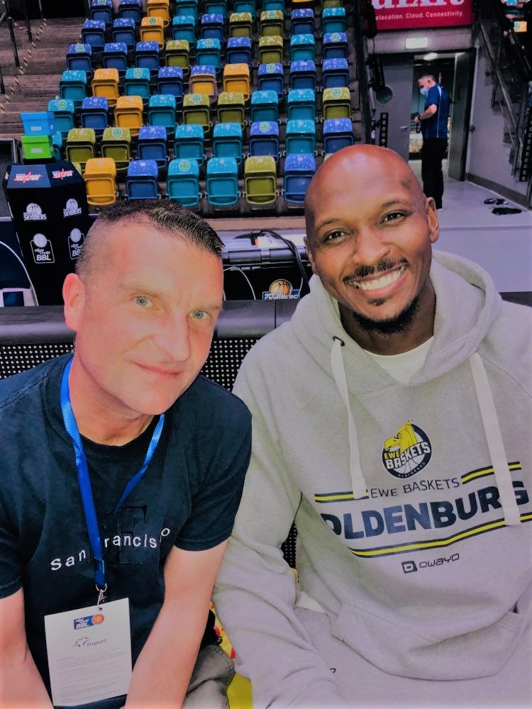 Now there was a long break of about 30 minutes as the court was prepared for the farewell ceremony. A talented young orchestra was brought on the court. The young men and women were incredible. They played beautifully and two songs that really stuck out were the famous Africa by Toto and the legendary Bille Jean by Michael Jackson. Now the club had something very special prepared for Rickey as they had countless short interviews prepared with old teammates and opponents as well as 6 chapters showing the career of Rickey in Oldenburg on the video cube. My conversation with Rosenbohm was never dull. He gave me some fascinating insight about the Rickey years. I wanted to know from him when it will really sink in for fans that Rickey won’t be here anymore? ‘I think that first game next season will be very difficult. Nobody can predict how it will be without him. It will be a totally new dimension to what fans are used to. Nobody has ever experienced this before. It will be a new beginning. The club will need a new identity figure, but I think it will take a while before that happens. A situation with Rickey will never come again’, warned Torben Rosenbohm. Chapter one of the video tribute to Rickey was called Love and basketball. Here one learns how Rickey and his wife Kara met and how their love was born. A lot of chapter one has sweet back round information to their times at Missouri (NCAA) and you get great insight from their mothers. Chapter two is entitled from zero to hero. Here we learn about the first few years in Oldenburg how the start wasn’t easy, but with time he adjusted and was crowned in 2009 in only his second season with the BBL title. One guy that has to be commended is fellow BBL legend Alex King who also retired this season after 20 years. I covered him at the start of his career in Frankfurt and remember him being a young kid who had a lot to learn on and off the court. An ex coach there wasn’t the best influence and he left to go to Bonn and the rest is history. Who knows where he would be today had he not made that move. I haven’t seen a German player make such an incredible development on and off the court like Alex King. He won countless titles with Alba Berlin and FC Bayern Munich and became a solid German national player. Off the court he matured and became a part of the hand in hand basketball camp and is a guy you can have a conversation with. He has become such an eloquent speaker and in his interviews for Rickey showed incredible class and sportsmanship looking back at the 2009 finals series where Bonn was up 2-1 and chocked losing 3-2. In game 5. Every Oldenburg fan remembers the last seconds in game 5. Bonn up 70-67 with less than 20 seconds to go and Jason Gardner made a drive and lay in plus foul to tie the game at 70-70. Bonn had the game in their hands. But an Oldenburg free throw and Paulding steal sealed the club’s first title. Even in 2022 despite many titles, that loss didn’t sit well with King. King answered in his interview part with real grace and very fair. ‘I was so sure we would be champions’, said Alex King. Rosenbohm remembers that game 5 as if it was yesterday. ‘Everybody could rely on Rickey. When he got hot, he felt so free. Je Kel Foster was so important that season. He was that third element that had been missing with Rickey and Jason Gardner. With Foster there, Rickey had total freedom, but he also knew that he didn’t have to do everything. Knowing that helped him do everything right’, warned Torben Rosenbohm.