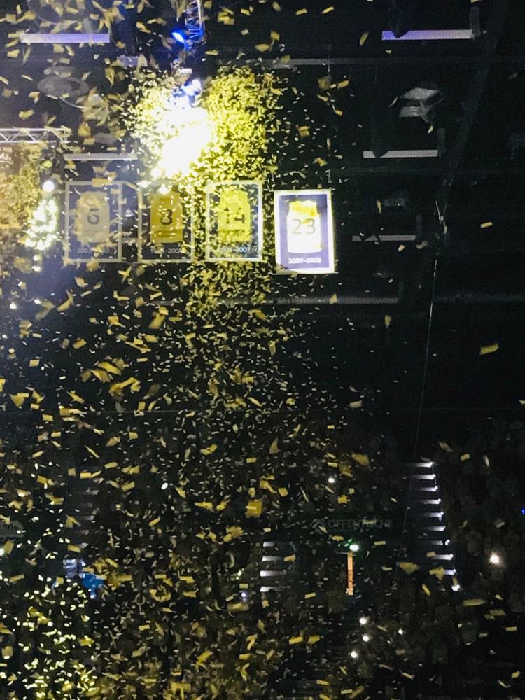 Now it was time for the final farewell. Before Rickey took the mic, it was time for EWE Baskets Oldenburg manager Herman Schuller to leave some lasting words. Everybody wanted to know if Rickey and his family would stay or head back to the states. It was made known that Rickey will return back home to the States, but on occasion return to Germany and helpt he EWE Baskets in some capacity in the organization. That was the best news of the night. I mean come on. Rickey lived in Oldenburg for 15 years. Oldenburg will always be his second home. Rickey is a Oldenburger. Schuller left some very impactful words, but something that is nothing new for any fan in the arena. Recently former Deutsche Bank CEO Jurgen Fitschen was in Oldenburg to meet with Schuller and was introduced to Rickey. He came in and said nothing. Then he just smiled. That is what Fitschen will always remember as well as everyone else whoever met Rickey. Then came the moment that everyone had dreaded. The hoisting of the immortal #23 of the EWE Baskets Oldenburg. 30 seconds of where hundred’s of Rickey moments were dancing in the heads of everyone. I wonder how many people in that gym were wondering ‘why not one more season Rickey’. I’m sure everyone was thinking that. As #23 was hoisted up to the other 3 EWE Baskets legends jerseys including Tyrone Mccoy and Daniel Strauch the applause was immense. Rickey then held a long 16 minute speech. Early in he spoke a few minutes in German, but for the majority he spoke his mother tongue. He talked in detail about Predrag Krunic who discovered him, Mladen Drijencic who was instrumental for him in the latter part of his career and his family. It was a heartfelt speech. And then he said thank you and left the court with his family and that was it. Rickey was gone. Unfortunately I didn’t see Rickey on this night. I had said my farewell to Rickey in Frankfurt and had him sign a few things. I had brought a few more things to sign on this night, but it just wasn’t meant to be, but I’m fine with it. I witnessed an incredible evening and saw how much love there was from a player to an organization and vice versa. From one legend to another ex CSKA head coach Dimitris Itoudis said it best this same weekend after he announced he is leaving CSKA Moscow after winning many titles there. ‘I don’t say goodbye. Id say I’ll see you around’.