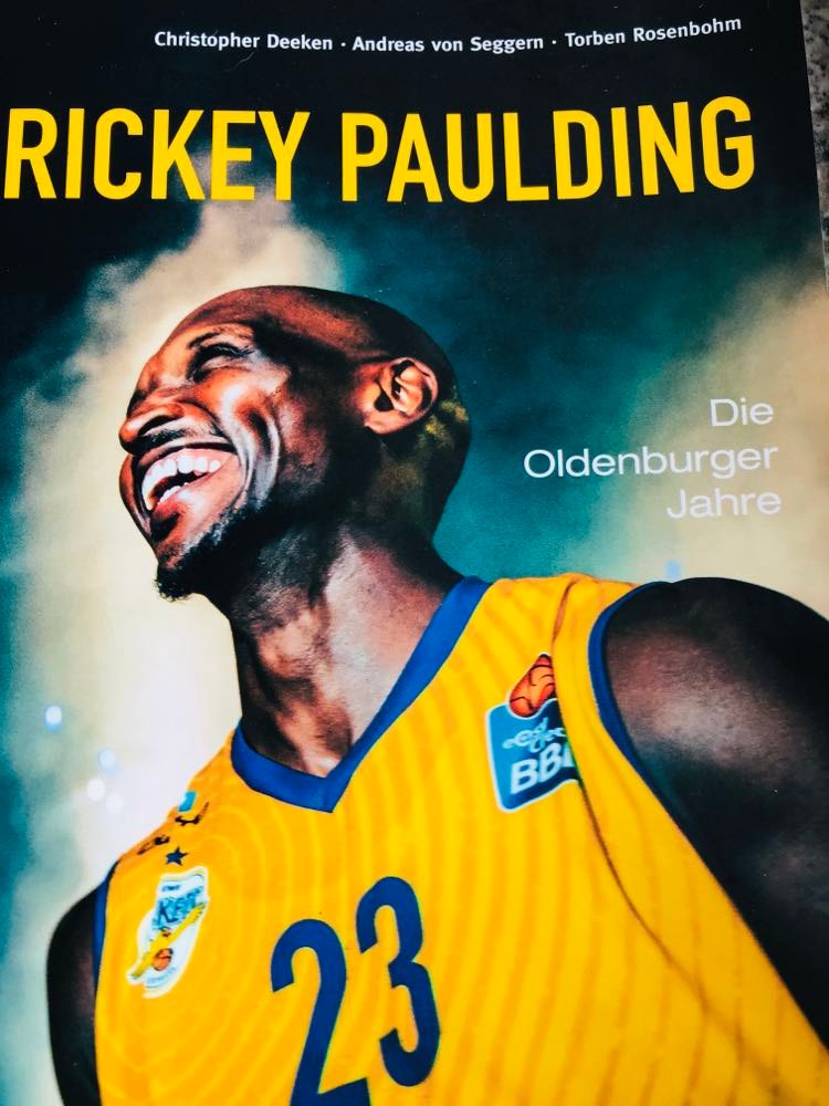 They had added extra seating so as many fans could witness Paulding’s last farewell which would be 6,500 + fans. I wasn’t sitting long at my seat in the press area when a familiar colleague popped up with ex EWE Baskets press secretary Torben Rosenbohm who had been the press speaker for many years and had been there from the start of Paulding’s career in Oldenburg in 2007. I hadn’t seen him for ages. His place for the evening wasn’t next to me, but because there wasn’t an abundance of press people there which for me was not understandable, he decided to sit next to me and we talked all night about basketball. It was a lot of fun. He also was a part of the writing team for the Paulding book. It was very bad timing that the Oldenburg football team had moved up that afternoon to the third league so much of the buzz that day was around them. The local Oldenburg press had sent seemingly everyone to cover that event. There was hardly any press from outside Oldenburg there. I think I can almost say no one. That is absolutely a shame for me. When I heard some months ago that Rickey would be having a farewell game, I didn’t hesitate. I wanted to be there and also pay my last respects to the greatest American player to ever play in the easyCredit BBL.