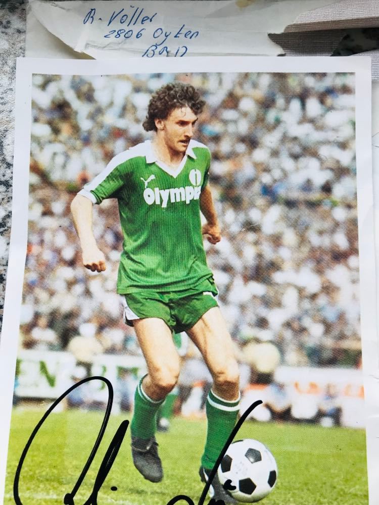 So what do Voeller and Paulding have in common? Not much except that both are living legends. The man is a German football legend who helped win the 1990 World Cup with Germany and will always be remembered for scoring goals, getting spit on by Dutch player Frank Rijkaard and his legendary TV interview in 2003 with Waldemar Hartmann. Back in the 80’s German football magazine Kicker had a great campaign in that fans could send their autograph wishes to players. Every week there were new players featured on the last page of the magatine. As a kid who was a diehard autograph collector in the 80’s living in the States, I also collected German football players autographs when I was in Germany visiting relatives. I remember sending letters to countless players from the states then and getting responses and signed pictures sent back. The incredible thing was that as a novice kid, I didn’t check that you had to send a return envelope. I never did that, but it also would have been tough with American stamps. So many players sent me an autograph paying the stamp charge including then German national players like Harald Schumacher and Wolfgang Dremmler, but so did icon Rudi Voeller. I remember that I still had the envelope that Voeller had sent me. When I got home Sunday night from the weekend, I checked the envelope on the back, I read Oyten. Rudi Voeller must have lived in Oyten at the start of his legendary career in the early 80’s. To top off this look back and bring in some nostalgia, I have had dealings with his son Marco who is the manager of the Fraport Skyliners that I have covered for the last 15 years. I actually showed Marco the letter a few years ago.