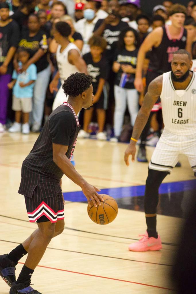So it was Sunday July 17th, 2022 when the day finally arrived for Mike Nwabuzor where he would play against the best player on earth Lebron James. He must have been pinching himself a few days before and in the hours leading up to the jump ball. I mean only a few months ago he was in North Macedonia. I’m sure if someone had told him that a few months later that he would face off against Lebron, he would of probably chocked laughing. ‘ Man , I wouldn’t have believed it. Credits to the best summer Pro Am in the world , the Drew League, you never know who will pop out each summer so as much as it was a surprise, it wasn’t. It’s really an honor to be able to matchup with him and go toe to toe with him as a team and make him work for every bucket and work to actually get a win’, added Mike Nwabuzor. The first fans arrived at 6.30 am for the scheduled 1,45 game start at King-Drew Magnet High School. The ex BG Dorsten guard was playing for team Black Pearl Elite with some overseas players like Etan Alvano who played last season in Germany for Pro A team Eisbaeren Bremerhaven, Vince Camper, and Jayce Johnson who played at Utah (NCAA) along with Dion Wright who had played at St Bonaventure (NCAA). His high school teammates Alvano and Wright were key for him playing on the team. His opponent was the MMV cheaters led by Lebron James and DeMar DeRozan along with ex NBA player Caspar Ware who’s dad was a local basketball legend and poured in 47 points in a Drew League title game in 1987, Charles Jackson and Eugene Phelps who was Nwabuzor’s primary defender during the game and had made a name for himself in Mexico early in his pro career.