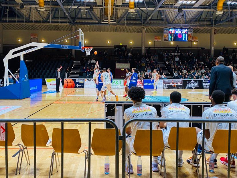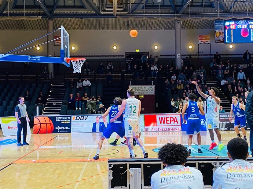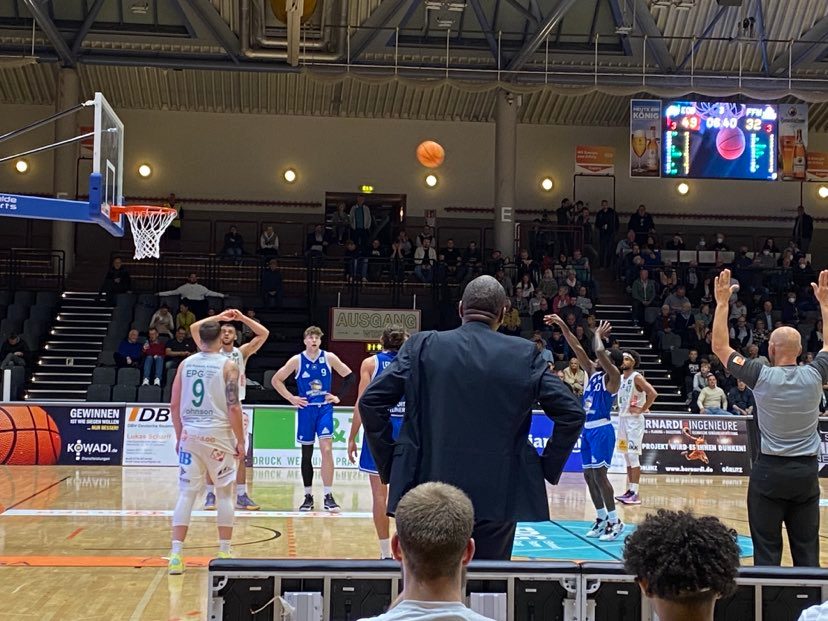 The game had a prominent guest as ex German national player Robin Benzing who is the all-time leader in caps with 165 took in the game. The EPG Baskets Koblenz began with a major blitzkrieg putting up 13 straight points totally overwhelming the Fraport Skyliners Juniors. From the quality it looked like men vs boys, but also from the physicality and the difference in bodies was like night and day. Koblenz moved the ball well and let it fly from deep as ex Bremerhaven guard Marvin Heckel connected twice as did ex Iserlohn German forward Moritz Huebner who did the same twice. Frankfurt had extreme difficulty coming to terms with the Koblenz physicality and aggressiveness which led to many turnovers quickly. But that totally domination was rapidly halted as Frankfurt struck back and went on a 8-0 run to cut the Koblenz lead to 13-8. It was no secret that Frankfurt would need a lot of support from sniper Felix Hecker and got it as he scored 5 points and young German Dusan Nikolic scored on transition getting the quick pass from Hecker who seemed to be all over the court. Frankfurt upped their energy and Koblenz simply lost their intensity. Koblenz’s offense was still moving the ball, but shots weren’t falling against the zone which they had inserted after being down 13-0. Down the stretch of the first quarter, the Fraport Skyliners Juniors continued to be carried by Hecker who would score in traffic and then nail an open three. Koblenz got 2 valuable buckets inside form Germans Niclas Sperber and Moses Poelking (206-C-1997). After one quarter the EPG Baskets Koblenz led 21-13, but their fire of the first 4 minutes had been abruptly extinguished. ‘We lost rhythm against their zone which led to easy baskets. Our defense was ok. We forced them to tough defense and our 1-1 defense was good’, stressed EPG Baskets Koblenz manager Thomas Klein.