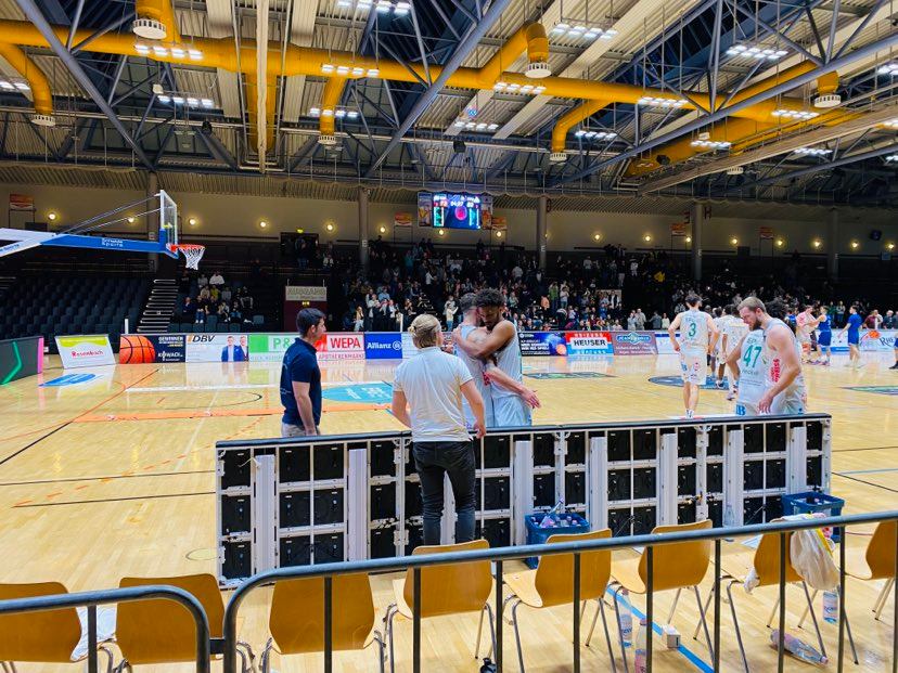 The EPG Baskets Koblenz continued to struggle in the fourth quarter mustering only 12 points, but kept their defense steady and withstood a last Frankfurt scare as Moses Poelking slammed the door shut at the end with big plays. Just like in the third quarter, the EPG Baskets Koblenz couldn’t get their offense going as the Fraport Skyliner Juniors zone continued to confuse and overwhelm Koblenz as it stopped their first 8 possessions. Frankfurt was able to only execute twice in this phase on offense getting 2 buckets from Felix Hecker to still lead 61-49. Marvin Heckel finally stopped the misery at the 5,57 second mark making a pull up jumper. He is so dangerous in the mid range area that once he has a little room, it’s good night. He didn’t waste anytime making a follow up runner for the 65-49 advantage. Poelking added a massive dunk after getting a beautiful lob pass from ex Coburg diminutive guard Yassin Turan. Koblenz seemed in cruise control after this 6-0 run, but the game wasn’t over yet as Frankfurt countered. Frankfurt had been fighting the whole game and raised their game not one step but two steps going on a furious 11-2 run to cut the Koblenz lead to 67-60 with 2 minutes to play. The CGM arena was getting very quiet as the shock of the fans was easily recognizable. As usual Frankfurt’s only real scoring option Felix Hecker came up with big answers as he scored 8 points including 2 three pointers. Richardson also added a basket on transition. Despite Frankfurt having momentum in crunch-time, they were unable to make the incredible come back reality as Moses Poelking stopped it with back to back lay ins. On the second, a Moore steal of an inbounds pass under the Frankfurt basket totally broke Frankfurt’s momentum. Turan added free throws in the last seconds. ‘Hecker did a great job getting us back, but Poelking made the difference and supplied the knock out punch’, added Nils Leonhardt. ‘Moses cam up big at the end. You can’t really ask for more than that’, stressed Pat Elzie. The EPG Baskets Koblenz were led by Moses Poelking with 18 points while Marvin Heckel added 14 points. Moritz Huebner contributed 10 points while Alani Moore added 10 points and 8 steals. The Fraport Skyliners Juniors only had one player in double figures with Felix Hecker with 27 points. The EPG Baskets Koblenz shot 44% from the field and 32% from outside and had 29 rebounds and 17 turnovers while the Fraport Skyliners Juniors shot 44% from outside and 38% from the three point line and had 30 rebounds and 24 turnovers.