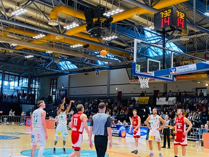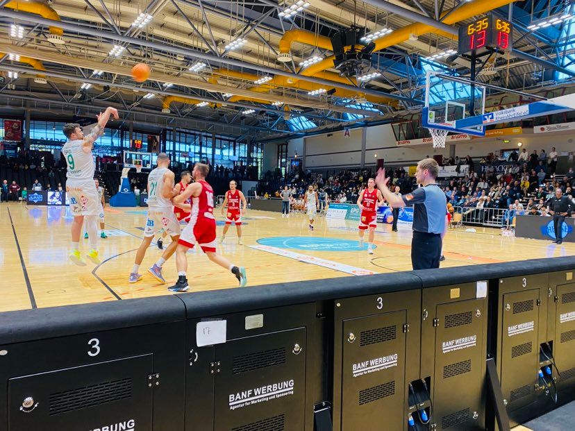 The EPG Baskets Koblenz sped out to a quick 5-0 lead in the first quarter, but the Seeburger College Wizards weren’t impressed as they played their game and let it rain three’s closing out the first quarter with a 30-18 run shooting a crazy 78% from down town. Koblenz got Poelking free throws and a trey from Heckel to begin the contest, but the guests quickly got going getting three’s from ex Heidelberg guard Cristoph Rupp and ex Hanau forward Malik Kudic for the 7-5 advantage. Despite Heckel making 3 free throws for the 8-7 lead, the guests continued to execute well on offense getting support from everyone as head coach Rouven Roessler didn’t shy from using his bench early. Rupp made a lay in as did big man Moritz Baer while more three’s fell from the sky from Simon Jaworski and ex Cornerstone great Christian Rodriguez who nailed 2 while young German Nikolas Mueller also scored for the 24-15 lead. The guests had one of those quarters where everything seemingly was falling and on top of that got most of the 50/50 balls. The EPG Baskets Koblenz got good looks, but shots just weren’t falling. The guests held the momentum until the end getting another trey from Rupp and a 20 footer from 26 year old German Johnson Olowookere who played in Leimen last season. Koblenz kept pace getting lay in’s from ex Coburg guard Yasin Turan and Poelking to trail 30-23 after 10 minutes. ‘I feel we were a bit surprised by their play. It isn’t normal to make 7 three’s in a quarter at this level. But you have to give them credit. They played very well making the extra pass. We were a bit soft on the close outs. They did hit a few wild three’s, but we mostly had hands in their faces’, stressed EPG Baskets Koblenz manager Thomas Klein.