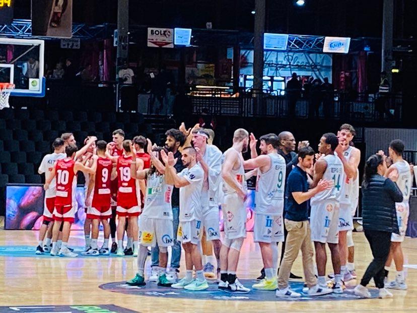 In the fourth quarter the EPG Baskets Koblenz kept control despite a small lapse allowing the guests to cut the lead down to 10 points, but were able to close out the game strong. Moritz Baer was on fire in the first minutes scoring 7 points, but the guests couldn’t make any ground as Koblenz got 2 three’s from Johnson and a pretty floater by Huebner and Sperber free throw as the EPG Baskets Koblenz led 90-74. With 5 minutes to go, the guests attempted one more comeback attempt going on a lightening 6-0 run as Kudic, Rodriguez scored and Rupp then made the tap in alley-oop with the pass from Rodriguez trailing only 90-80. But that was as close as Karlsruhe would get as the EPG Baskets Koblenz closed out the game with a 13-4 run. Koblenz got free throws from Heckel Sperber and Johnson. Johnson then added an off balance shot for the 98-80 advantage. The question then was which Koblenz player would break the 100 points to supply the free drinks. It was American Moore who didn’t know about the tradition, but agreed on donuts. ‘I told him after the game to pay for drinks or supply donuts. He agreed on donuts. I hope he doesn’t forget my favorite the regular flavor’, smiled Dominique Johnson. Head coach Patrick Elzie also opted to play his whole bench inserting the 3 kids Schnabel, Ade-Eri and Milton Heckel in the last minutes who combined for 4,48 minutes. ‘We got more tired and we couldn’t sustain their runs as they continued to make shots’, stated Christian Rodriguez. ‘They got heavy legs. They executed better, but we also made our shots. We gave the last blow and they couldn’t react as they had less energy’, said Dominque Johnson. The EPG Baskets were led by Alani Moore II with 23 points, 6 rebounds and 8 assists while Dominque Johnson added 18 points, 8 boards and 4 assists and Marvin Heckel supplied 17 points and 9 dimes while the Seeburger College Wizards were led by Christoph Rupp with 22 points while Christian Rodriguez added 20 points. The EPG Baskets Koblenz shot 48% form the field and 47% from outside and had 48 rebounds and 18 turnovers while the Seeburger College Wizards shot 48% from the field and 34% form outside and had 36 rebounds and 15 turnovers.