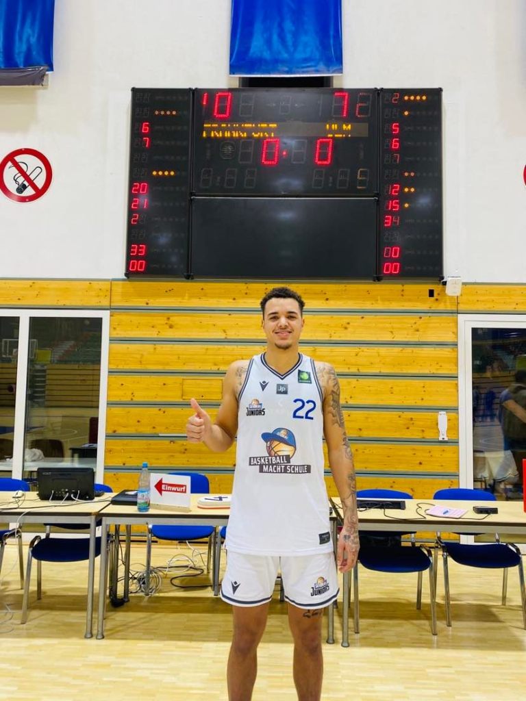 The Fraport Skyliners Juniors continued to execute their offense and defend solidly while Orange Academy just couldn’t find a way to consistently get defensive stops. Orange Academy got a burst of instant energy by Thomas Guas as he began the fourth quarter with 5 points on a runner and three pointer as Frankfurt led only 75-60. The Fraport Skyliners Juniors continued to execute well and spread the offensive love around getting a three pointer by Voeller, free throws by Leonhardt and 4 points by Onyejiaka while David Fuchs found some offensive inspiration scoring 6 points, but Orange Academy still trailed 83-65. Frankfurt got a late three pointer by Drago Crnjac, but it was Nolan Adekunle who continued to be in attack mode and sparked his stats with 8 points and 2 three’s. A few years ago, you wouldn’t have seen his outside shot as a strength on the scouting report, but in 2022, he can say it’s a weapon. ‘I’m very confident taking the three now. I have made big steps the last 2 years and especially last summer with the youth national team. I had confidence from my teammates and took three’s. I was the second best shooter at the tournament’, warned Nolan Adekunle. 16 year old huge German talent Joel Cwick also hit a late three pointer and finished with 12 points in 16 minutes and continues to excel at the men’s level. ‘Joel played well today. He always plays hard on defense and takes his chances on offense. He was one of the few positive aspects in the game for us. I was happy with his performance but in the end we need our older guys to step up’, warned Baldur Ragnarsson. With time running down, little used role player Isaac Obanor scored the 100th Frankfurt point on free throws. As always tradition in basketball Germany is for that player who scores the 100 to buy a case for the team or in some cases something else. ‘Isaac owes us donuts. I don’t know what it costs, but it isn’t cheap’, laughed Nolan Adekunle. The Fraport Skyliners Juniors had 5 guys in double figures and were led by Nolan Adekunle with 29 points. Jordan Samare and Juston Onyejiaka added 14 points a piece while Philipp Hadenfeldt added 11 points while orange Academy was led by Joel Cwick and Antonio Dorn with 12 points a piece. The Fraport Skyliners Juniors shot 56% from the field and 48% from outside and had 40 rebounds and 20 turnovers while Orange Academy shot 46% from the field and 41% from outside and had 24 rebounds and 30 turnovers.