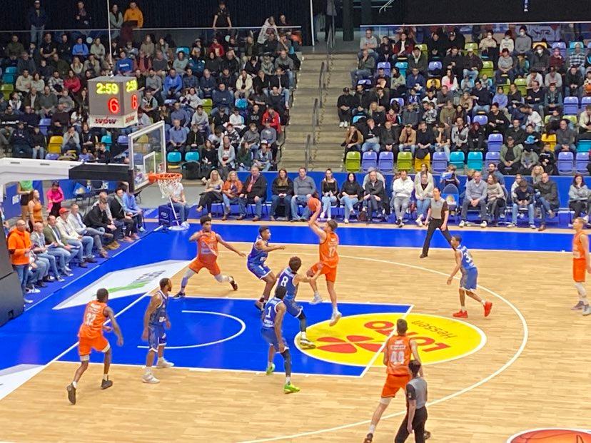 Both teams found their offensive rhythm right away in the first quarter and no team could escape the other as ratiopharm Ulm led 22-20 after 10 minutes. The Fraport Skyliners started the offensive attack first as German national player Lukas Wank found his game instantly scoring 5 unanswered points, but the guests didn’t waste anytime getting 2 pretty baskets as ex Rasta Vechta forward Robin Christen fed German beats Nicolas Bretzel for the alley op dunk and ex NBA Summer League player Karim Jallow added a reverse lay up to trail 5-4. Both teams tried to get their big men involved with Matt Haarms and Bretzel as both answered with buckets, and both had good games combining for 30 points. After both exchanged baskets, it was ex Tarleton State (NCAA2) great Josh Hawley that gave Ulm the 15-14 advantage with a hard two hand dunk as Frankfurt would have massive problems all day long with 1-1 defense. Then ex Alba Berlin youth player Nolan Adekunle was inserted. He had wooed everyone only 18 hours earlier making 29 points in the Pro B win against Orange Academy in front of the eyes of head coach Geert Hammink. But at the end of 40 minutes, the athletic German had only logged 2,48 minutes. It was a shame that he hadn’t received more minutes something he would have deserved. He made a pretty basket for the 16-15 Frankfurt lead. Ratiopharm Ulm then grabbed the lead back and didn’t give it up again the rest of the game. Spanish guard Juan Nunez made a lay in and then got to the free throw line as Montenegran forward Fedor Zugic made 4 of 5 free throws and Hawley also made one as the guests led 22-18. Then with 5,6 seconds left came the games most spectacular play of the game as American JJ Frazier went coast to coast making an acrobatic lay in as the Fraport Skyliners trailed 22-20. ‘There was no defense played on either side. Both teams were getting to their spots. We had problems taking care of the ball’, stated Quantez Robertson. The Fraport Skyliners shot very well with 44% from the field and 50% from outside while ratiopharm Ulm was still looking for their touch from outside as they were at 20%. Ulm had the slim 10-8 rebound edge while Frankfurt had 5 turnovers.
