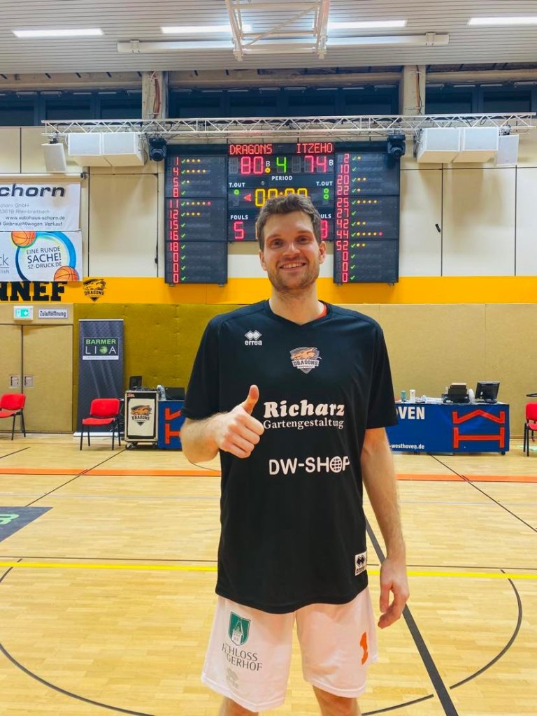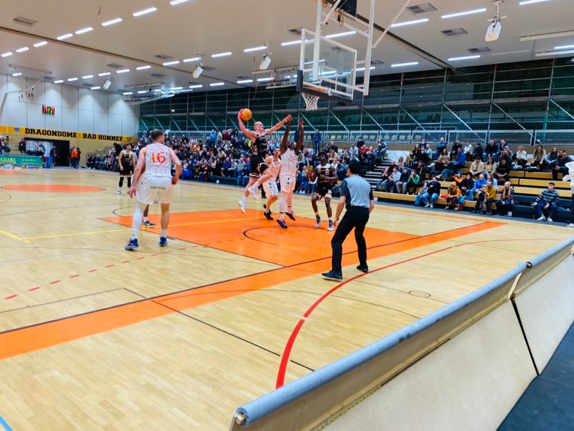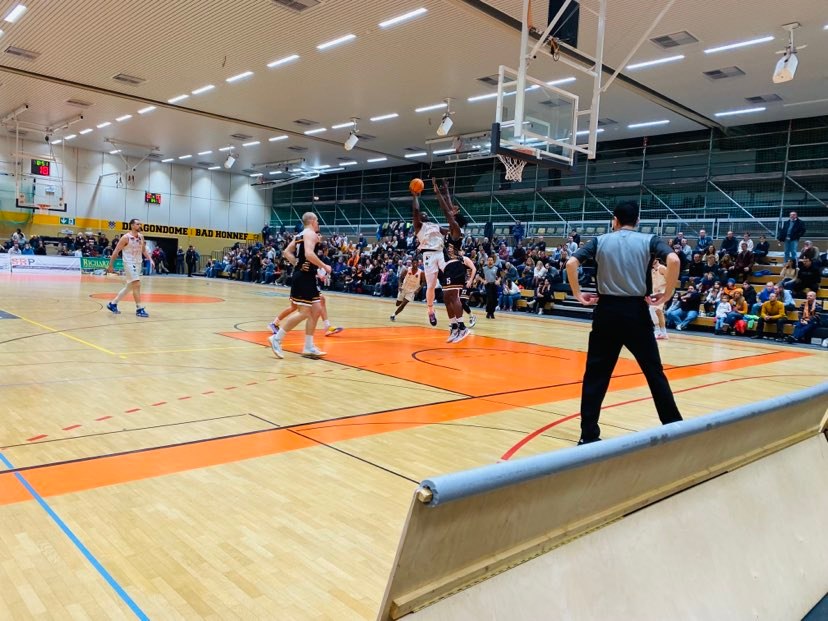 In the fourth quarter the Dragons Rhondorf offense became more fluid and got more support from various players which the Itzehoe Eagles just couldn’t match and never could regain the lead. The Dragons Rhonndorf begam well getting a trey from Florian Koch which fueled the offense which led to a Bangala runner and Pual Albrecht old school hook shot and 69-62 lead. The energy level of the Itzehoe was wanning except for Shaq Rombley who never had his motor off scoring a bucket and making free throws to cut the Rhondorf lead to 69-65. But then came the key blow a s the Dragons Rhondorf went on a 9-4 run to extend their lead to 78-69 with 2 minutes to go. In the run, the Dragons got valuable production from Zaba Bangala who was a beast scoring 3 buckets. Rombley did all he could in the post to defend him, but there is only so much you can do when baby Zion is 3 times as wide. ‘Even if he is huge, I never backed down. He really knows how to use his body to his advantage. We tried to get him in foul trouble, but it didn’t work’, smiled Shaq Rombley. Back up point guard Jonas Falkenstein added a three pointer. The Itzehoe Eagles got a Marshall runner and three pointer from McBride in the last minute, but it was too little too late. ‘Our offense was more fluid in the fourth quarter and we had good decision making. Bangala energy sparked us also’, stated Florian Koch. ‘Not making free throws hurt us as well bad fouls. We also didn’t finish defensive plays’, said Shaq Rombley. The Dragons Rhondorf were led by Florian Koch with 29 points and 12 boards while Zaba Bangala had 18 points and 12 rebounds while the Itzehoe Eagles were led by Shaq Rombley with 26 points and 15 rebounds while Trey McBride had 24 points and 12 rebounds. The Dragons Rhondorf shot 52% from the two point area and 30% from outside and had 41 rebounds and 7 turnovers while the Itzehoe Eagles shot 53% from the two points range and 16% from outside and had 41 rebounds and 11 turnovers.