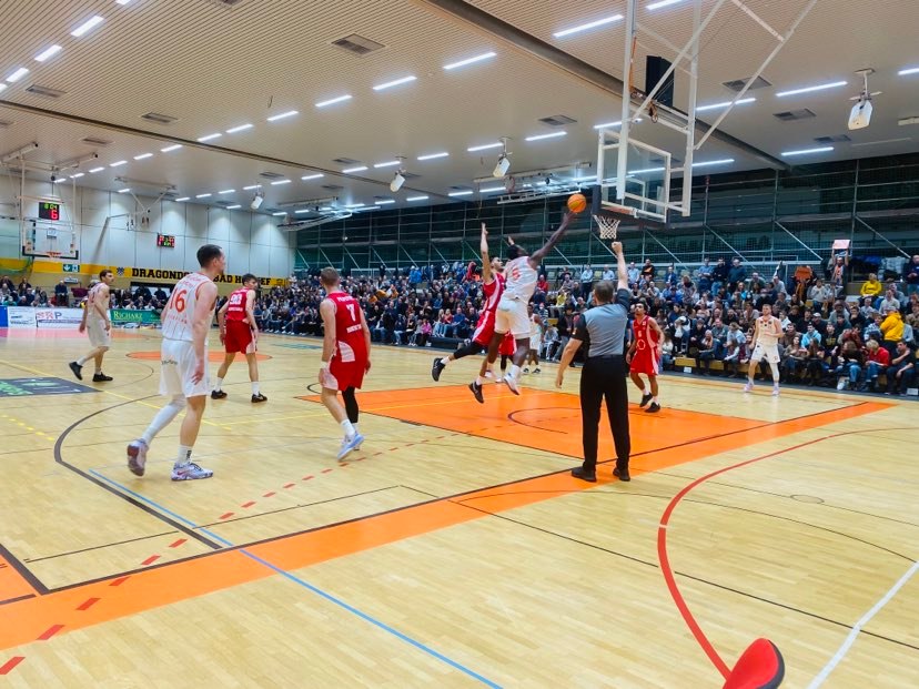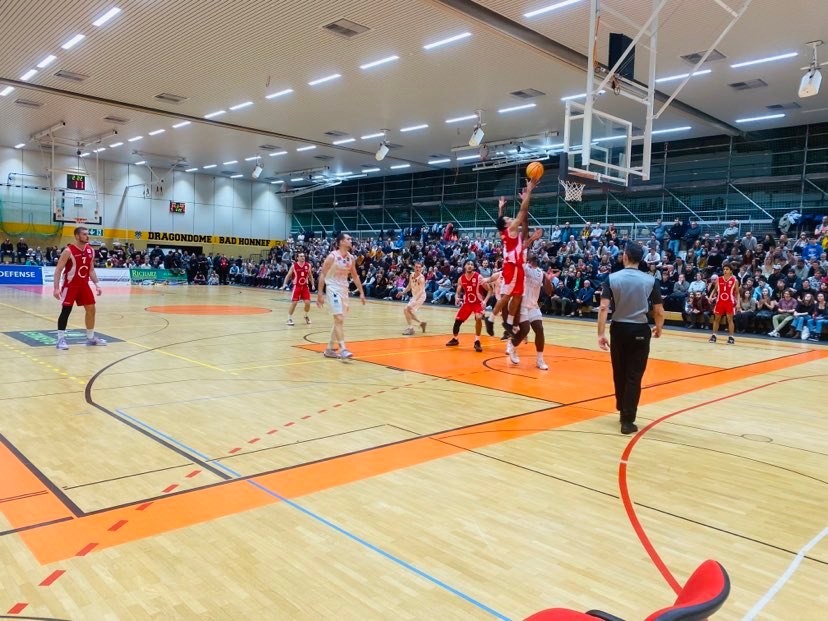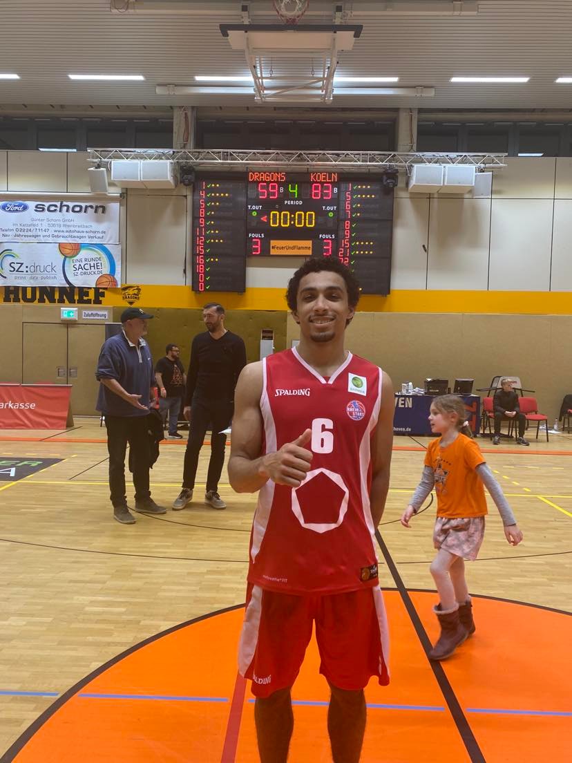 In the fourth quarter, the Dragons Rhondorf lost energy and opted for more 1-1 play and less team basketball as the 22-9 quarter by the RheinStars showed that they just weren’t a match for the RheinStars on this evening. The guests got quick baskets from Von Seckendorff and Sow while the Dragons Rhondorf received a three pointer by Buchholz who had a tough shooting night from outside at 3/11 trailed 68-54. The Dragons Rhondorf had one more burst of energy as Zaba Bangala scored 4 unanswered points to cut the Cologne lead down to 68-58, but that was as close as they would get. The RheinStars Cologne then closed out the game in style and slammed the door shut tight going on a 15-1 run to win. Von Seckendorff scored twice, Ali Sow nailed a trey and even 15 year old German Davi Remagen connected on a trey as did Pilipovic. ‘We did a great job locking up on defense and continued to work hard to get good shots’, warned Ali Sow. ‘The result at the end looks a lot worse than how we played. Even Remangen hit a three at the end. When you start hitting shots and feel good, then the rim starts to look a lot bigger. Then everything goes in’, stressed Paul Albrecht. The RheinStars Cologne were led by Ali Sow with 29 points. Elijah Schmidt added 19 points and 1^3 boards while the Dragons Rhondorf were led by Florian Koch with 13 points while Devon Goodman added 11 points and Paul Albrecht 10 points. The RheinStars Cologne shot 40% form the field and 26% from outside and had 53 rebounds and 7 turnovers while the Dragons Rhondorf shot 33% from the field and 32% from outside and had 39 rebounds and 15 turnovers.