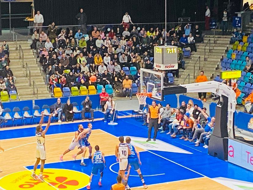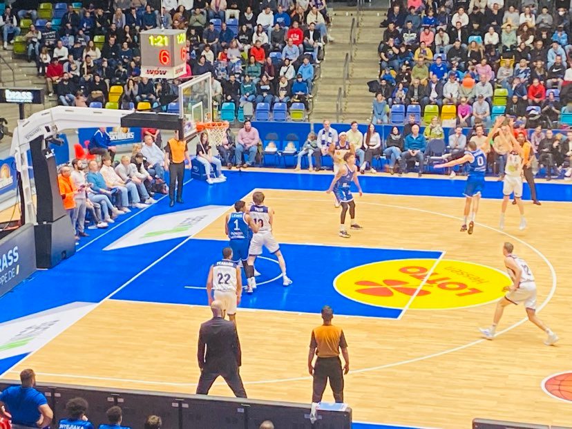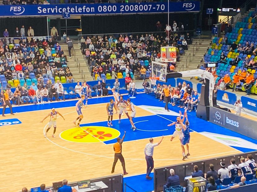 The first quarter was a back and forth battle as no team could shed the other as there were 3 lead changes and no team led by more than 6 points. In the first minutes, it was the Selom Mawugbe vs Marcus Lewis show as ex Azusa (NCAA2) big man Mawugbe was aggressive and scored easy baskets in the paint area with 6 points while ex Eastern Kentucky (NCAA) guard Marcus Lewis steered home 7 points as the Fraport Skyliners led 10-9. But Rostock then found some daylight going on a 7-2 run to lead 16-12 as ex Texas State forward Nijal Pearson contributed 7 points and ex Fairfield (NCAA) guard Tyler Nelson made a steal and coast to coast lay in. Frankfurt made silly turnovers which led to extra Rostock possessions while BBL top scorer Derrick Alston Jr played no factor. But on this night, the offense of the Fraport Skyliners wouldn’t be in a rut long. Frankfurt found ways to score and got key buckets from Lewis, two by Obiesie on transition and a trey from Lithuanian guard Laurynas Beliauskas (193-SG-1997) to tie the game at 21-21. Both teams continued to score at ease as Obieise scored again on transition and Nelson made another lay in on the penetration as he punished Frankfurt over and over with his speed. After 10 minutes the score was deadlocked at 25-25. ‘No team played defense and both teams made a lot of shots’, stated Fraport Skyliner Quantez Robertson.