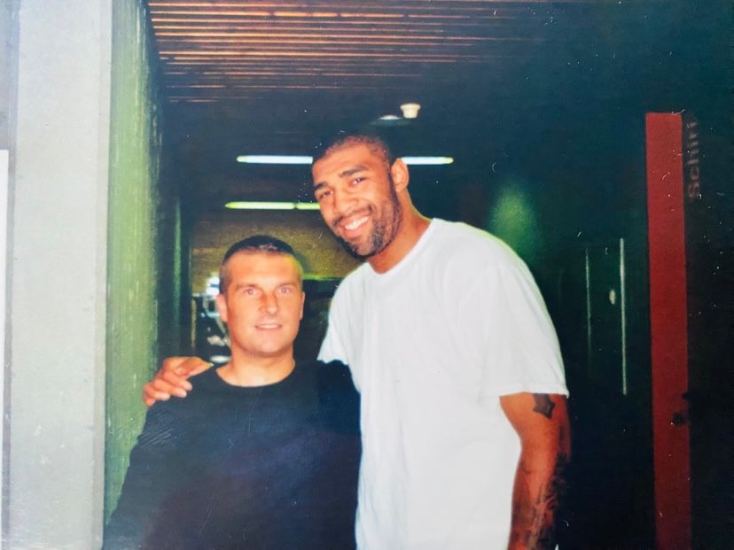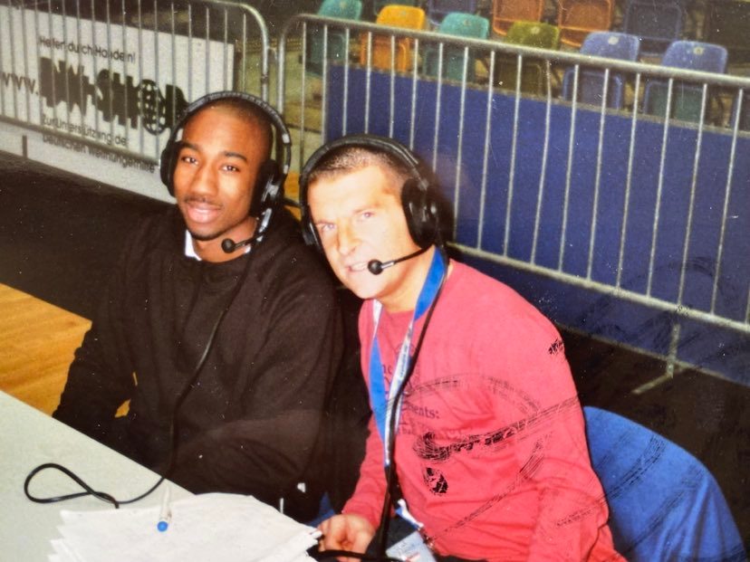 Miles Schmidt-Scheuber interviewing Dru Joyce in Frankfurt in his rookie season in Germany in 2007 when he played for ratiopharm Ulm