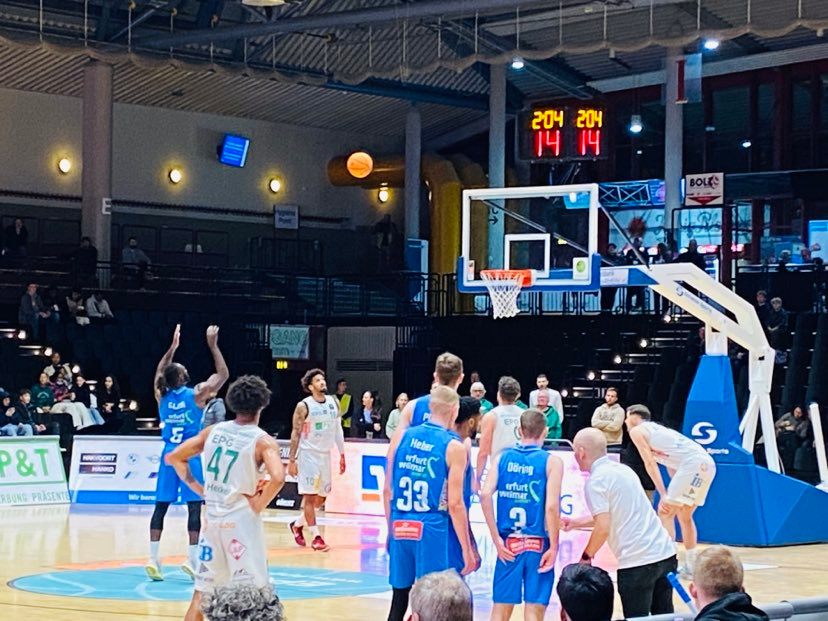 The EPG Baskets continued their domination in the second quarter despite not hitting shots as well anymore until the last 3 minutes where they allowed a Erfurt run to stay in the game. The EPG Baskets Koblenz kept up the pressure from the first quarter and cruised out on an overwhelming 14-6 run to extend their lead to 38-19. In the run Brian air Butler scored 5 points as he was aggressive and used his quickness and agility to get by Noah Kamdem, Dominique Johnson hit a trey and German Moses Poelking made a hard two handed dunk and also made a beautiful back door pass to Moore for the lay in which was the best ball movement of Koblenz up to that point. Koblenz continued to play strong defense with a high intensity and on offense were aggressive and made easy baskets. Koblenz had a little fortune that during the run, the guests missed a number of give me baskets. But the EPG Baskets Koblenz couldn’t hold their momentum as Erfurt got more aggressive and got to the free throw line as Edi and Lyles scored. Koblenz had 2 defensive lapses allowing Edi to fly in for an offensive rebound and put back and left a Jan Heber totally open to drill home the trey. Koblenz got a off balance jumper by Johnson and a Brian Butler basket as he executed the pick and roll perfectly with Marvin Heckel. ‘The first 5 minutes were good, but then we gave up the game. We weren’t mentally strong on defense and didn’t attack as aggressively anymore. We couldn’t match their physicality’, stated Thomas Klein. The difference in the game were the shooting percentages as Koblenz shot 50% from the field and Erfurt only shot 9% from outside while Koblenz also controlled the boards 23-19.