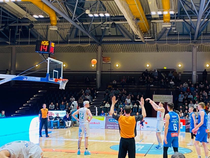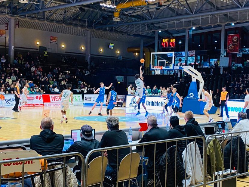 The first 3-4 minutes was a tug of war as the game was pretty even as both clubs found their rhythm fairly quickly as the EPG Baskets Koblenz led 9-7. Quick diminutive guard Alani Moore II was a spark as he was a pit bull on defense getting 2 steals and racking up 5 points while Germans Marvin Heckel and Moses Poelking scored. The guests got 5 points from their number one go to guy French forward Edi Guy Landry with 5 points while ex Fraport Skyliner Junior Noah Kamdem scored a basket. But then came the turning point of the first quarter as the EPG Baskets Koblenz closed out the first quarter with a swift and brutal 15-6 run to lead 24-13 after 10 minutes. In the run, Koblenz got vital production from ex easyCredit BBL player Dominique Johnson who supplied 7 points while Heckel hit 2 three’s and Leo Saffer made a big dunk. It seemed like with the injury to sniper Leon Friederici, Johnson felt the need to be extra aggressive and it paid off. Koblenz fine ball movement sparked by their aggressive defense which forced the guests to permanent contested shots was their recipe for success. ‘It was a good quarter. We weren’t that great on the box out, but we had very good motion on offense’, stated EPG Baskets Koblenz manager Thomas Klein.