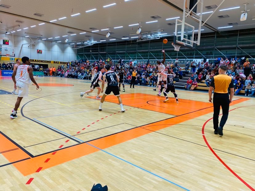 The Dragons Rhondorf made a furious comeback in the fourth quarter and finally got over the hump and preserved the win. The Dragons Rhondorf began the fourth quarter exploding with a 16-1 run to dead lock the game at 79-79. Salami began the run with back to back three’s testing his weak 27% from outside while Koch added a lay in. Rhondorf demonstrated solid inside out basketball and Bangala scored twice on the pick and roll as Goodman served up two dimes and Goodman scored on transition. The Dragons Rhondorf heightened their defense clogging the zone and not allowing the Sixers to finding good options and shots. The Sixers had to force more which led to 9 stops. But the BSW Sixers also had big misfortune seeing shot after shot go in and out or around the toilet bowl. The BSW Sixers finally scored their first field goal of the fourth quarter at the 4,10 minute mark as Rahn made a turn around shot for the 81-79 lead. The guests then found some energy getting the 86-79 lead, but the Dragons continued to keep pace. Bangala got to the free throw line and after starting 1/6 from the line hit 3 of 4 to trail only 87-82. But then came the Devon Goodman show as he wasn’t good, good, good, but great as he led his team on a 10-1 run scoring all 10 points to lead 92-88 and they would never look back. ‘He was a strong leader. He made key decisions and shots’, stressed Mubarak Salami. BSW Sixers head coach Christoph Schreiber then got a technical foul. The Dragons Rhondorf closed out the game with 4 Salami free throws. ‘We stepped up our defense and made every pass difficult and had a compact zone. We also made it tough for Nicholas and Rahn in the zone’, added Mubarak Salami. ‘We were 5-0 in fouls to start. They play their game well, but it wasn’t anything crazy. We couldn’t make our quick pass, which made it difficult for us. Then we began to miss easy shots. It was a snow ball effect and they got back into the game’, stated Donte Nicholas. The Dragons Rhondorf were led by Devon Goodman with 28 points and 11 assists. Mubarak Salami added 25 points. Florian Koch added 18 points and Nicholas Buchholz had 12 points while the BSW Sixers were led by Kristaps Kilps with 20 points and Donte Nicholas had 17 points. The Dragons Rhondorf shot 48& from the field and 37% from outside and had 42 rebounds and 19 turnovers while the BSW Sixers shot 46% from the field and 33% form outside and had 33 rebounds and 16 turnovers.