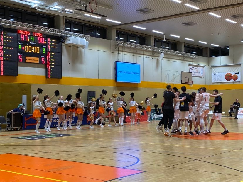 The Dragons Rhondorf made a furious comeback in the fourth quarter and finally got over the hump and preserved the win. The Dragons Rhondorf began the fourth quarter exploding with a 16-1 run to dead lock the game at 79-79. Salami began the run with back to back three’s testing his weak 27% from outside while Koch added a lay in. Rhondorf demonstrated solid inside out basketball and Bangala scored twice on the pick and roll as Goodman served up two dimes and Goodman scored on transition. The Dragons Rhondorf heightened their defense clogging the zone and not allowing the Sixers to finding good options and shots. The Sixers had to force more which led to 9 stops. But the BSW Sixers also had big misfortune seeing shot after shot go in and out or around the toilet bowl. The BSW Sixers finally scored their first field goal of the fourth quarter at the 4,10 minute mark as Rahn made a turn around shot for the 81-79 lead. The guests then found some energy getting the 86-79 lead, but the Dragons continued to keep pace. Bangala got to the free throw line and after starting 1/6 from the line hit 3 of 4 to trail only 87-82. But then came the Devon Goodman show as he wasn’t good, good, good, but great as he led his team on a 10-1 run scoring all 10 points to lead 92-88 and they would never look back. ‘He was a strong leader. He made key decisions and shots’, stressed Mubarak Salami. BSW Sixers head coach Christoph Schreiber then got a technical foul. The Dragons Rhondorf closed out the game with 4 Salami free throws. ‘We stepped up our defense and made every pass difficult and had a compact zone. We also made it tough for Nicholas and Rahn in the zone’, added Mubarak Salami. ‘We were 5-0 in fouls to start. They play their game well, but it wasn’t anything crazy. We couldn’t make our quick pass, which made it difficult for us. Then we began to miss easy shots. It was a snow ball effect and they got back into the game’, stated Donte Nicholas. The Dragons Rhondorf were led by Devon Goodman with 28 points and 11 assists. Mubarak Salami added 25 points. Florian Koch added 18 points and Nicholas Buchholz had 12 points while the BSW Sixers were led by Kristaps Kilps with 20 points and Donte Nicholas had 17 points. The Dragons Rhondorf shot 48& from the field and 37% from outside and had 42 rebounds and 19 turnovers while the BSW Sixers shot 46% from the field and 33% form outside and had 33 rebounds and 16 turnovers.