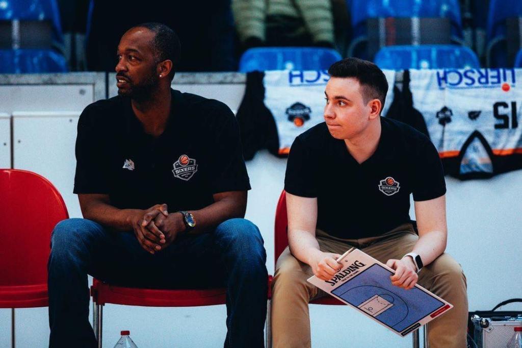The ex eenager who believes that 4 time NBA winner Steph Curry is the best shooting point guard of all-time then got another break and for the first time got out of his comfort zone of being at home and working with USC Leipzig and landed a job with Pro B team BSW Sixers in Sandesdorf. This was his first real introduction to men’s basketball at a higher level. It was a lot of learning by doing and the players that didn’t know him right away must of thought ‘what is this kid doing here and giving me orders’. But in the end the club experienced a good season reaching the playoffs sweeping Erfurt and then losing a tough 3 games series to ambitious organization Wolmirstedt. ‘ It was a crazy experience. I knew nothing about pro basketball coaching in the beginning and I was younger than most of the players. But Coach Chris Schreiber gave me the chance to develop myself and to grow into the role as an Assistant Coach. I learned pretty fast how to prepare the opponent and I learned something new basically every week and every game. I’m really thankful for that opportunity’, stressed Tom Walther . When your young, it is always vital to soak in as much as possible and that is exactly what he did learning as much as possible from Darren Stackhouse, the younger brother of NBA legend Jerry Stackhouse. ‘Darren was one of the main reasons why I started to work for the Sixers in late September 2021. He was supposed to be the Sixers Assistant coach but as he also was JBBL AC for MBC and worked with me together in Leipzig’s youth basketball so there wasn’t much time left for Pro B. So he really pushed the idea of me also coaching in Pro B and we both ended up on the coaching staff of Chris. I won’t forget his humor and our meals after the Pro B home games, together with player Sven Papenfuss’, commented Tom Walther .